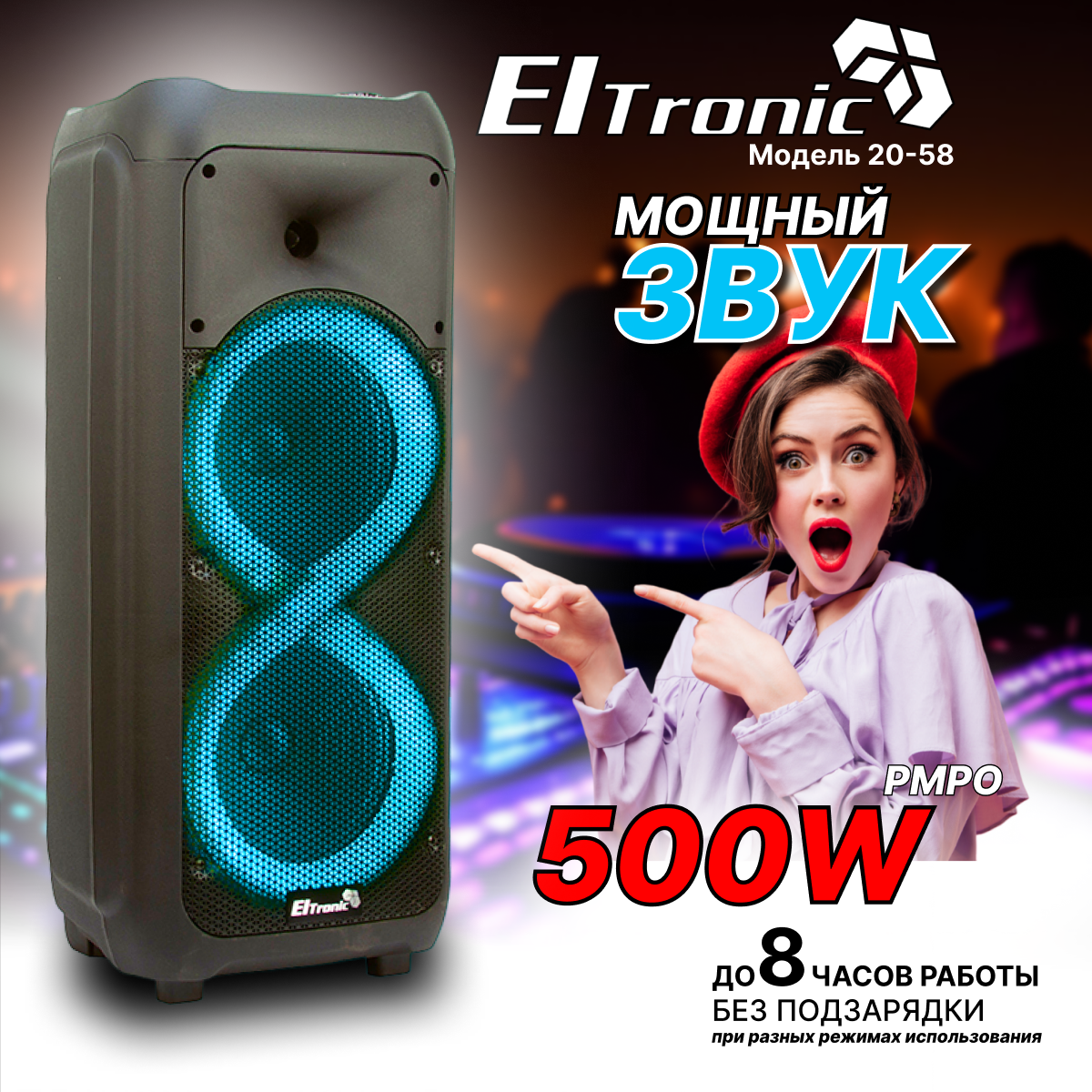 Акустическая беспроводная караоке блютуз колонка ELTRONIC 20-58 DANCE BOX 500