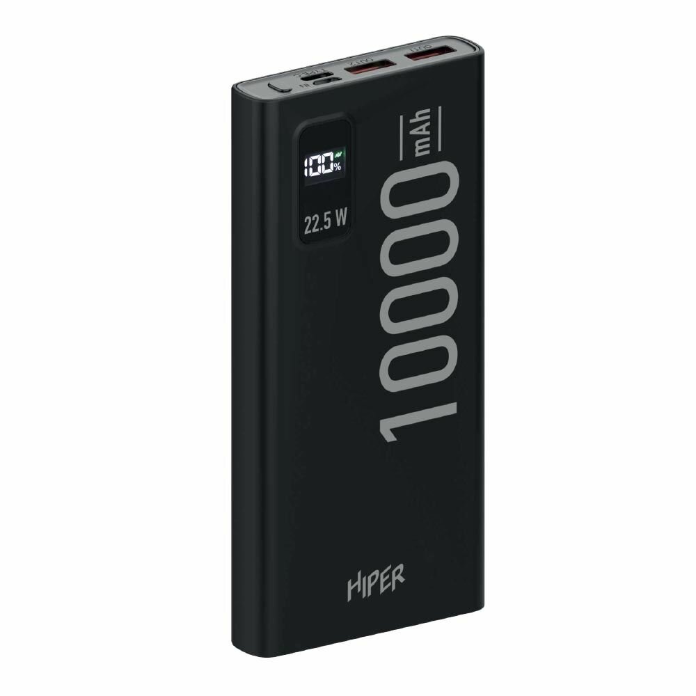 HIPER Внешний аккумулятор Hiper EP 10000, 10000 мАч, 3A, 2 USB, QC, PD, дисплей, черный