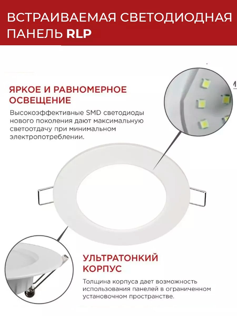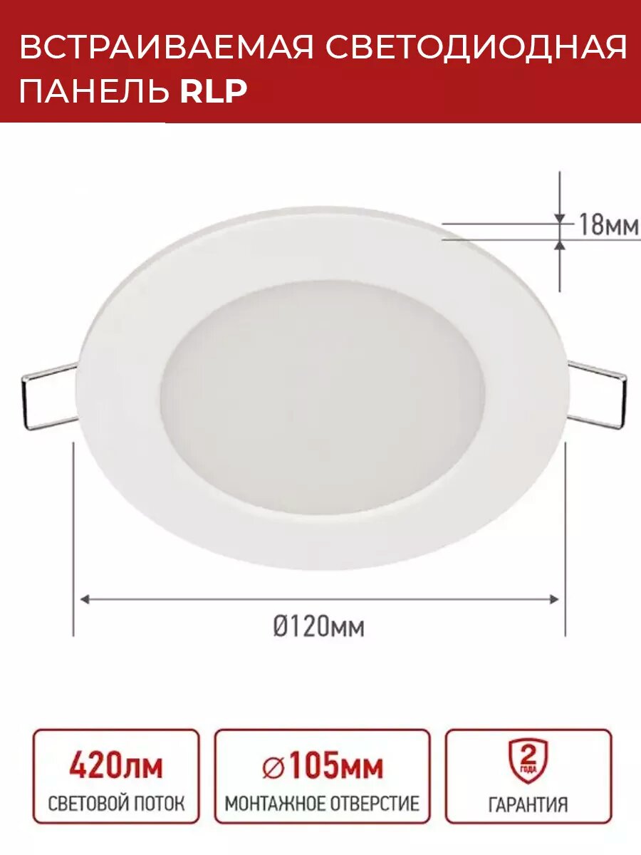 СохранитьПанель светодиодная встраиваемая круглая RLP 6Вт 230В 6500К 420Лм 120мм белая IP40 IN HOME интересное:
