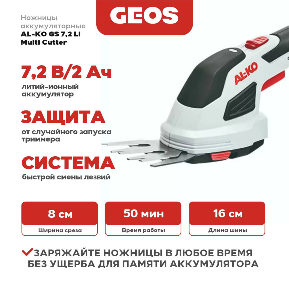 Ножницы-кусторез аккумуляторный AL-KO GS 7,2 Li Multi Cutter, 2 А·ч, 7.2 В