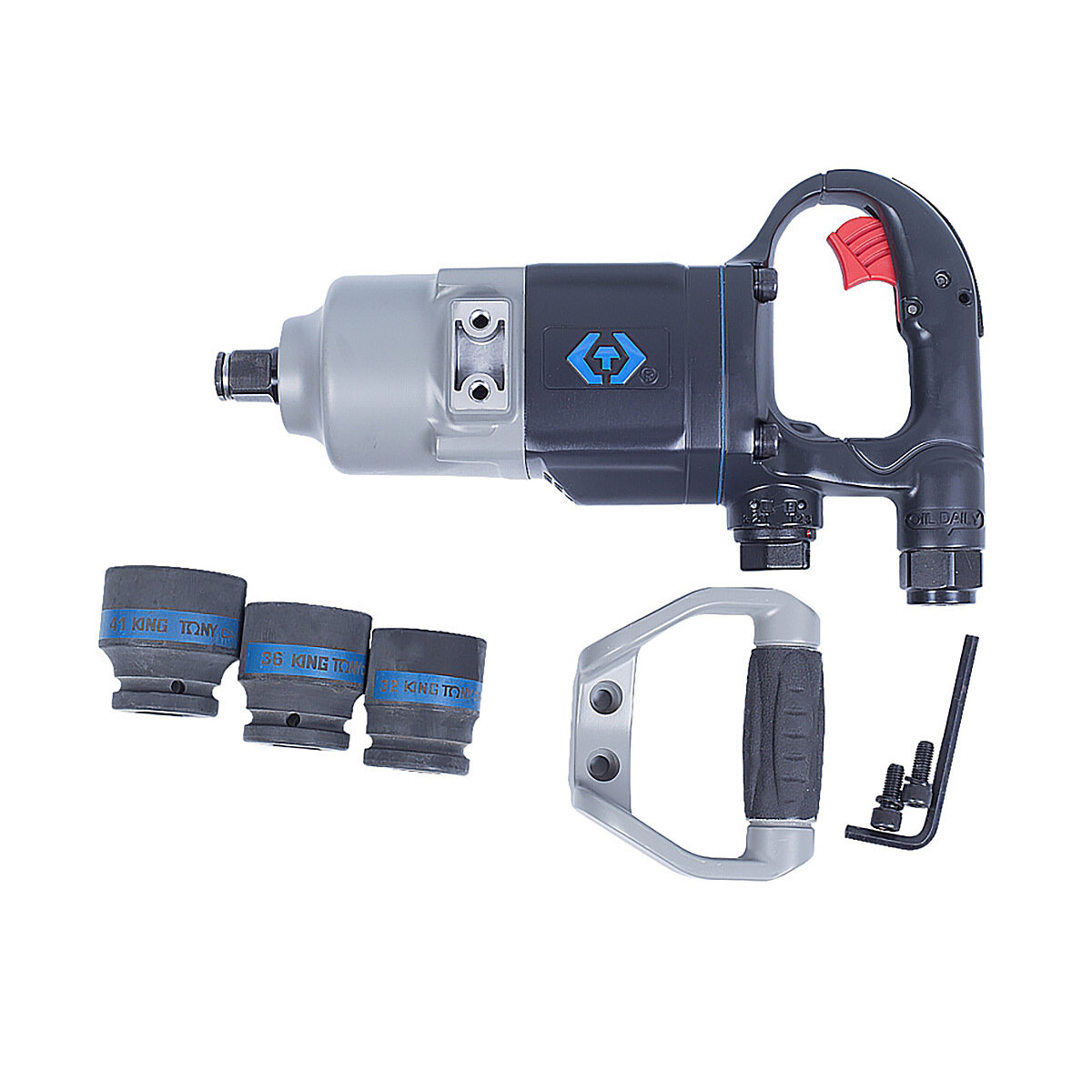 KING TONY P33671-160B Гайковерт пневматический ударный 3/4 , 2170 Нм, в комплекте 3 торцевые головки