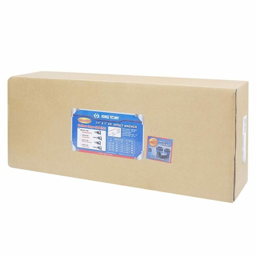 P33671-160B KING TONY Гайковерт пневматический ударный 3/4", 2170 Нм, в комплекте 3 торцевые головки