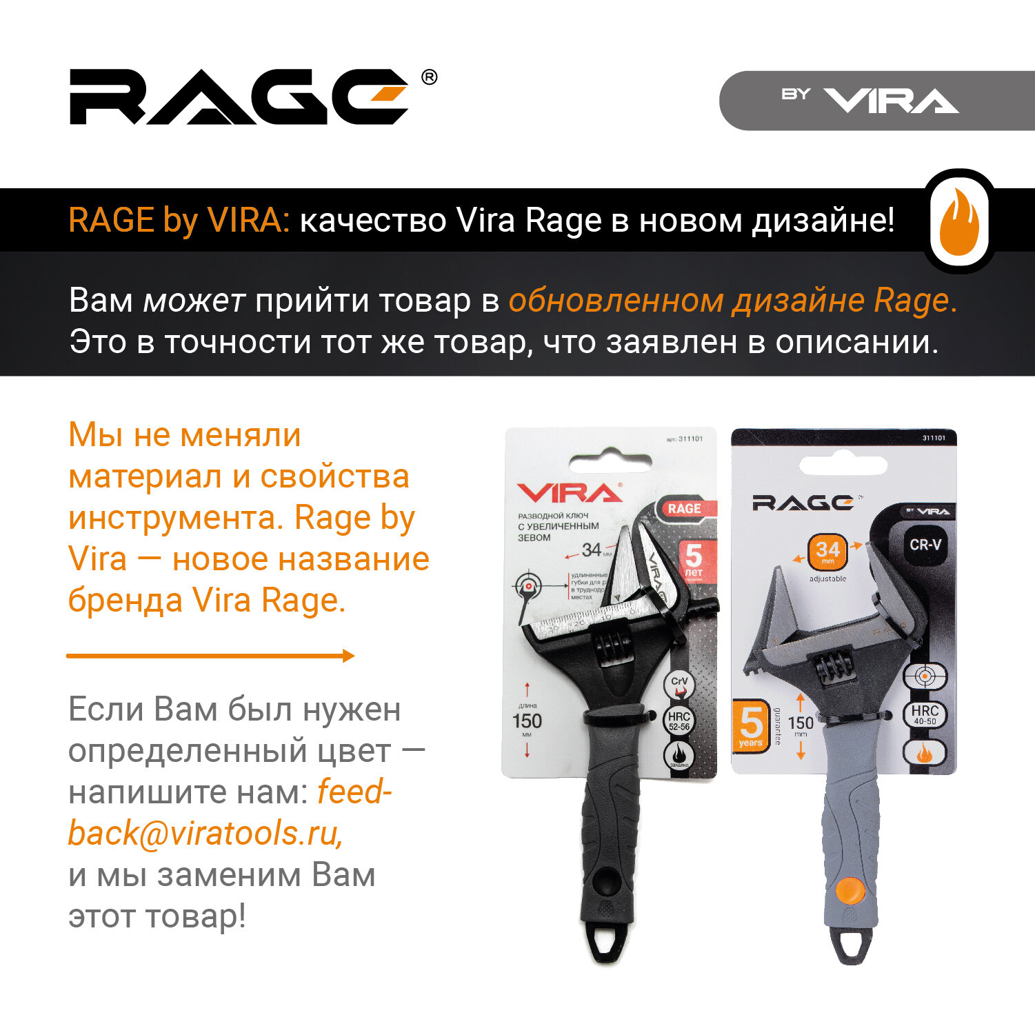 Купить RAGE by VIRA Ключ разводной с тонким губками 150/34 мм 311101