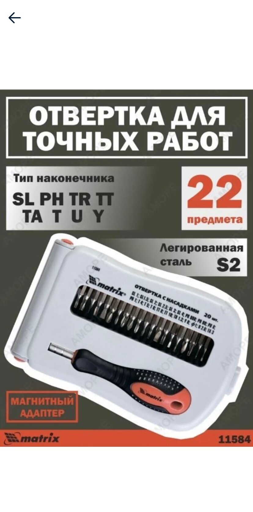 Купить Отвертка для точных работ с насадками 22 предмета MATRIX 11584