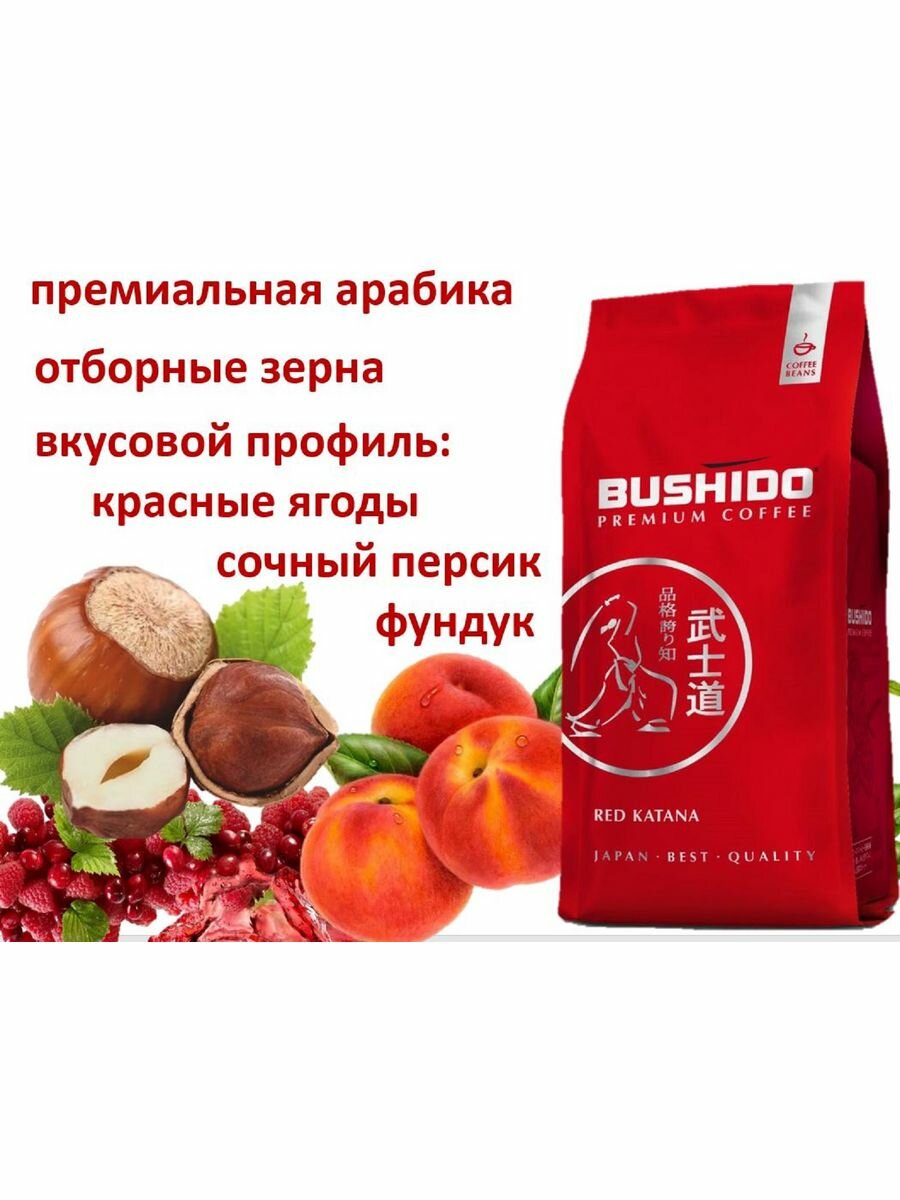Кофе в зернах BUSHIDO "Red Katana", натуральный, 1000 г, 100% арабика, вакуумная упаковка, BU10004007