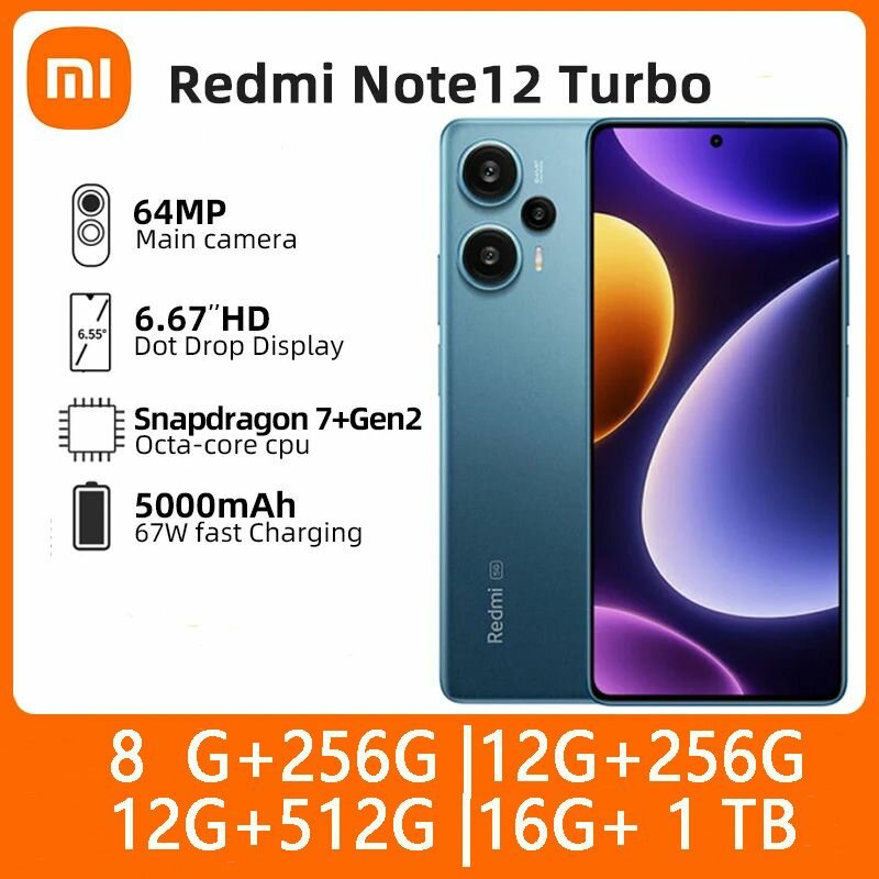 Глобальная прошивкой Xiaomi Redmi Note 12 Turbo 5G 256 ГБ /512 ГБ / 1 ТБ Snapdragon 7+ Gen 2 120Гц OLED дисплей NFC 67Вт Быстрая зарядка 64Мп Камера