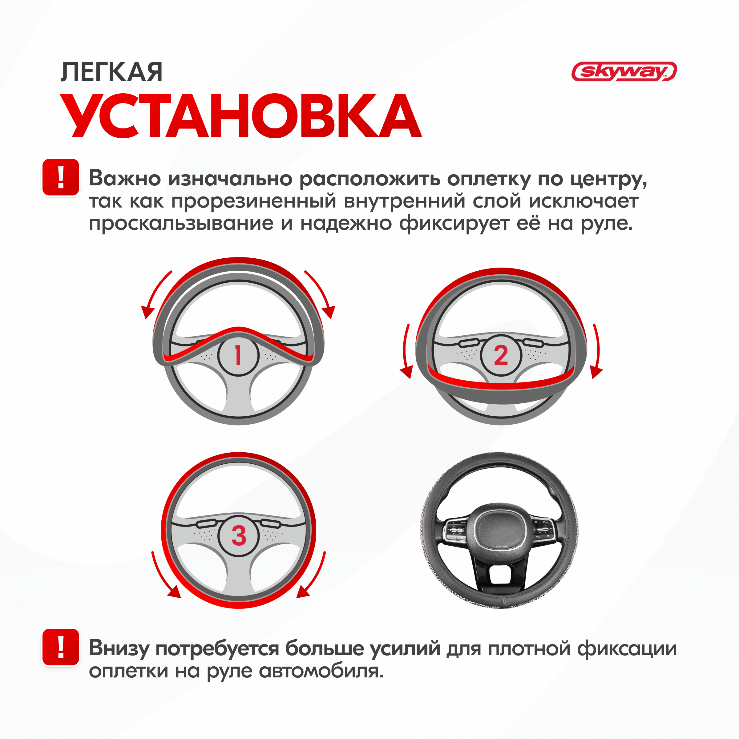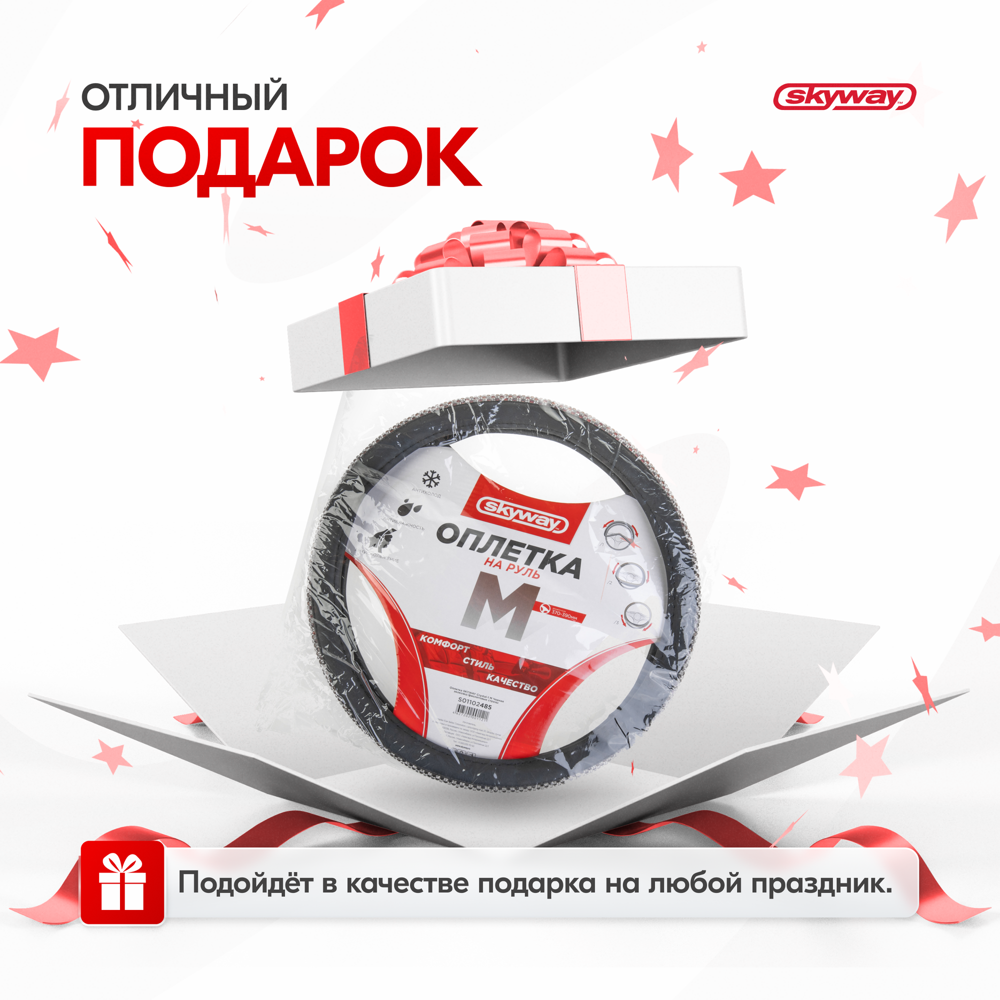 Оплетка на руль Top-12 SKYWAY M (37-39) серый экокожа, S01102501