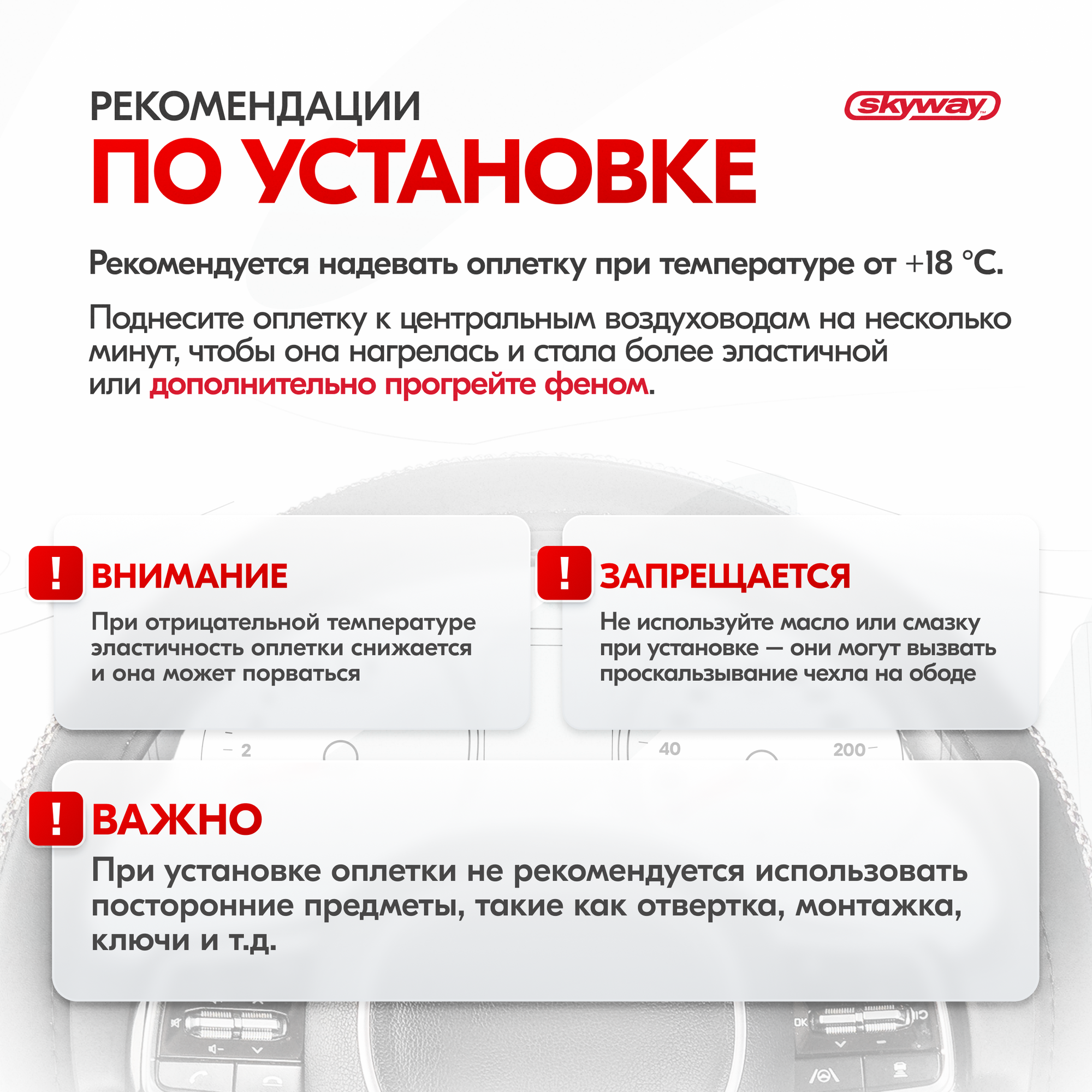 | Дополнительная информация | Рекомендации производителей: выбирайте оплетку под размер вашего рулевого колеса. Неверно выбранный размер может стать причиной проскальзывания оплётки или привести к невозможности снять или надеть её на руль. |