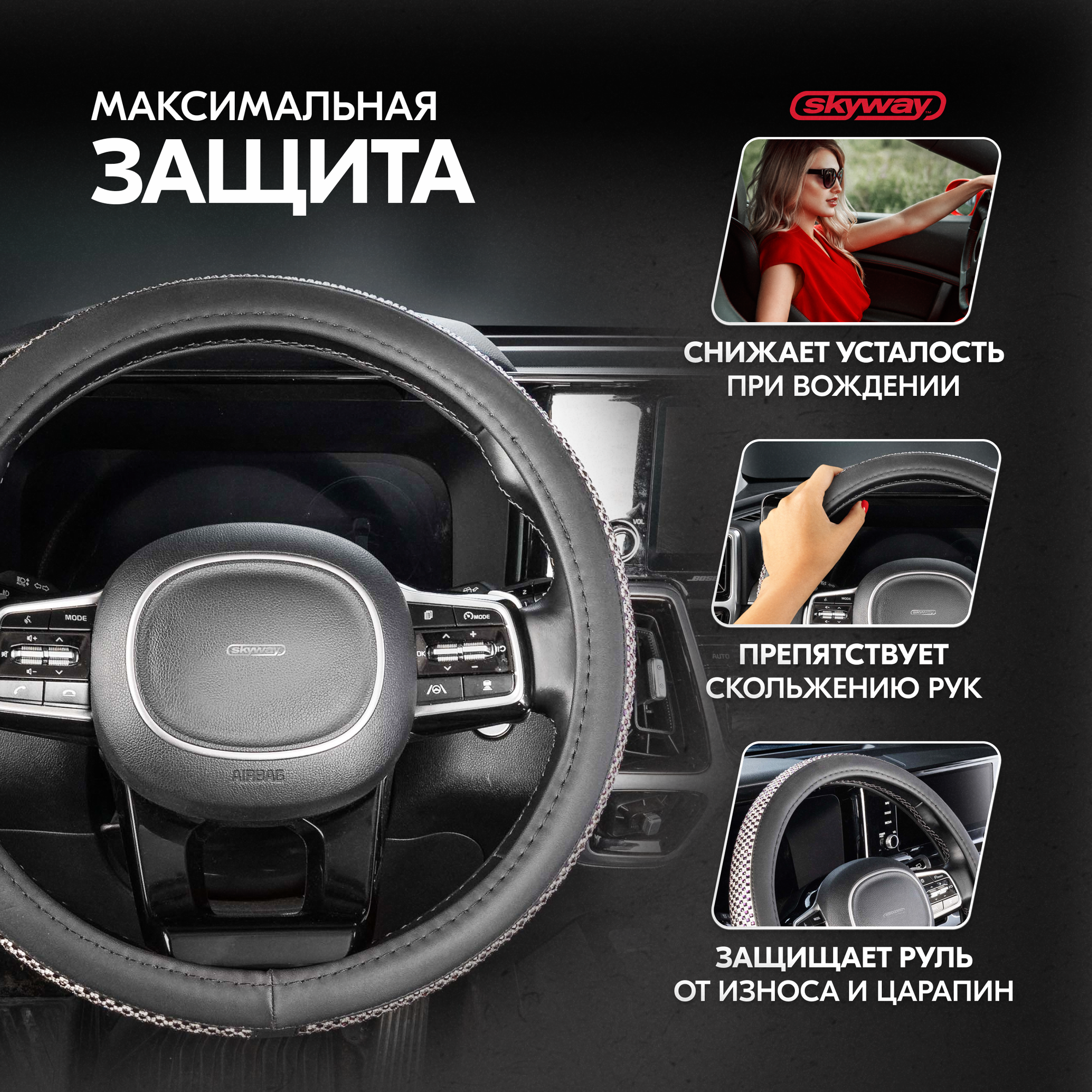 Оплетка на руль Crystal-1 SKYWAY M (37-39) черный экокожа, S01102485