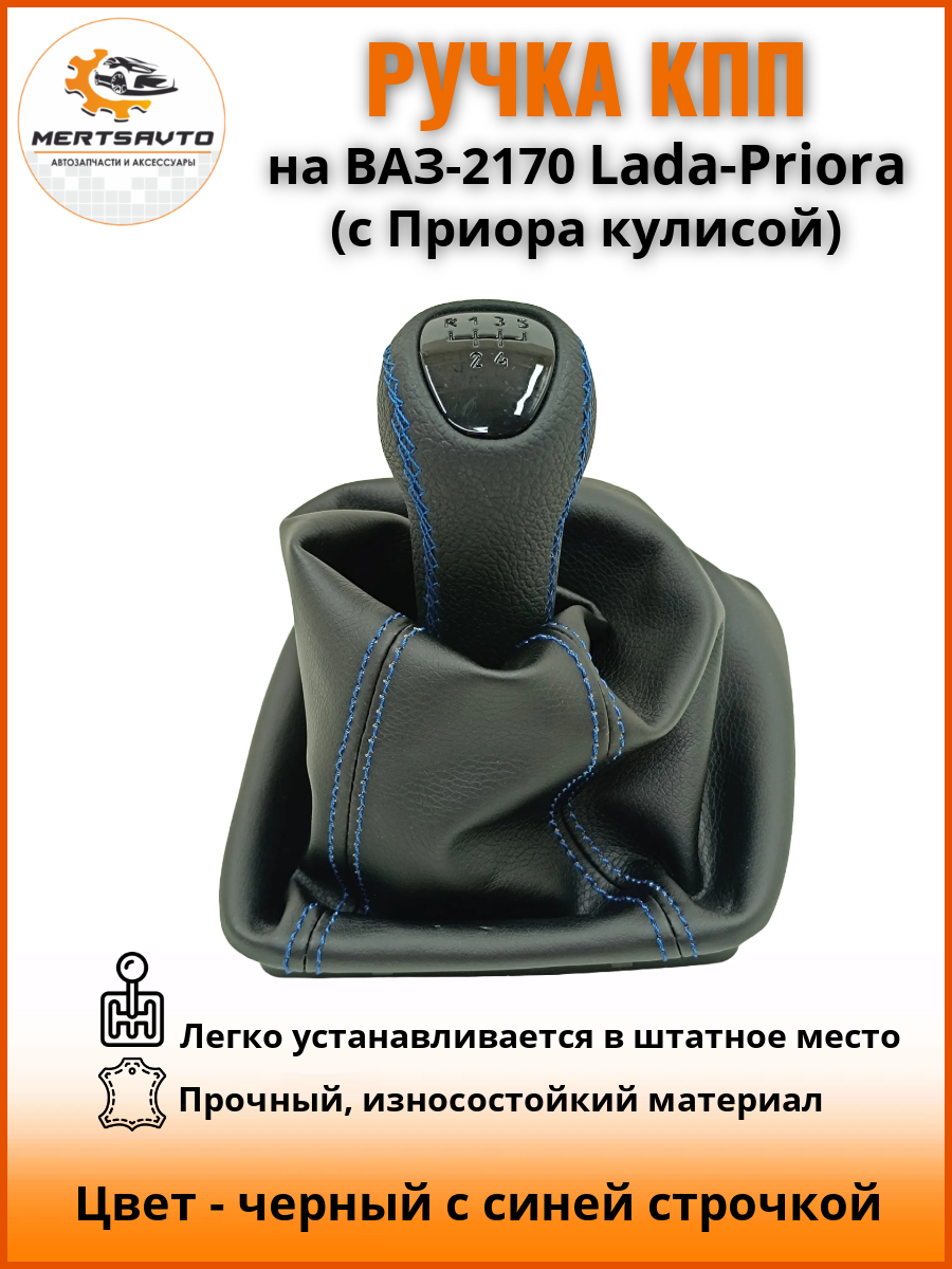 СохранитьРучка КПП с чехлом "люкс-черный" на ВАЗ-2170 Лада Приора 1 (Lada Priora 1) с Приора кулисой, ручка коробки переключения передач, черный с синей строчкой интересное: