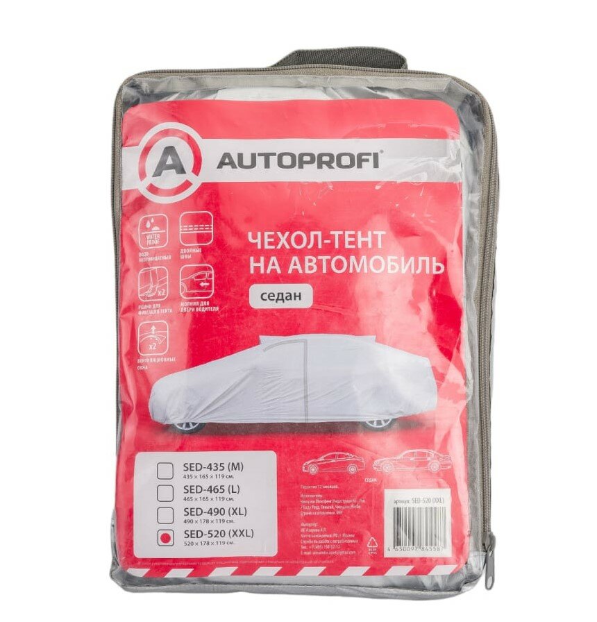 AUTOPROFI SED-520 (XXL) Тент для укрытия а/м для легкового а/м (520х178х119 см) "AUTOPROFI" SED-520 (XXL) (водонепроницаемый, седан)