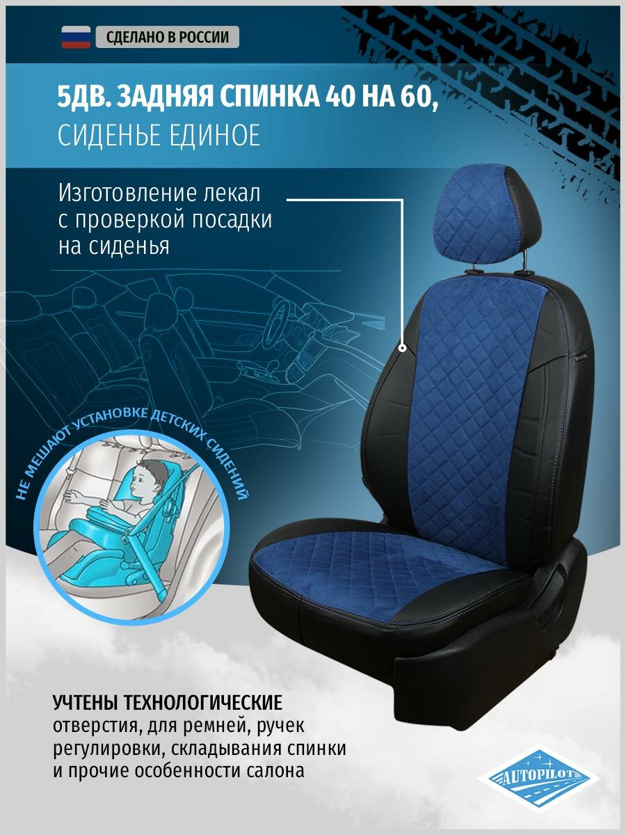 Комплект чехлов Автопилот Алькантара ромб Citroen С-4 Hb 5-ти дв. с 04-11г. Черный + Синий интересное: