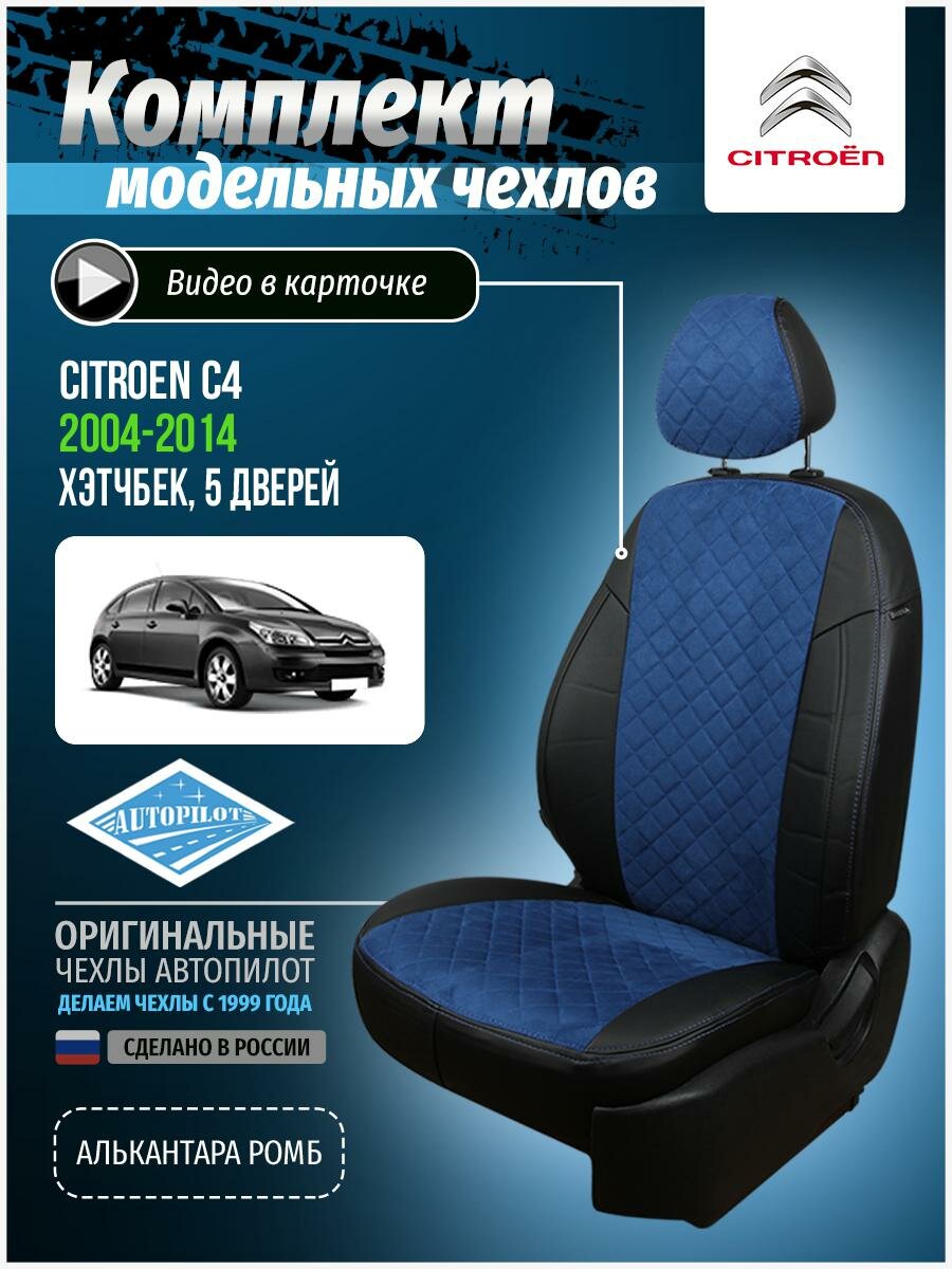 Чехлы для Citroen C4 1 2004-2014 Автопилот Синий Алькантара с ромбом tsi-ts4-ts4kh-chesi-ar