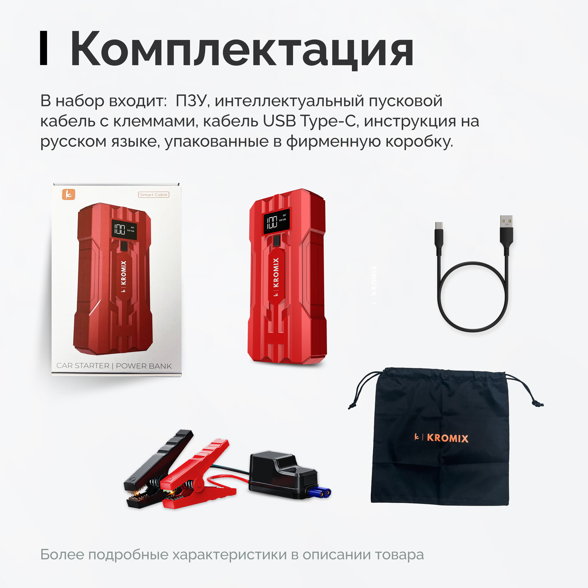 | Комплектация | Пусковое устройство - 1 шт. Умный кабель - 1 шт. Кабель USB Type-C - 1 шт. Инструкция |