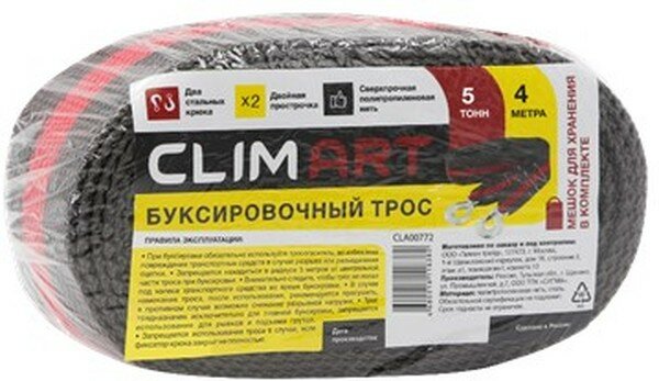 CLIMART CLA00772 Трос буксировочный Clim Art 5т 2кр с мешком термоупаковка