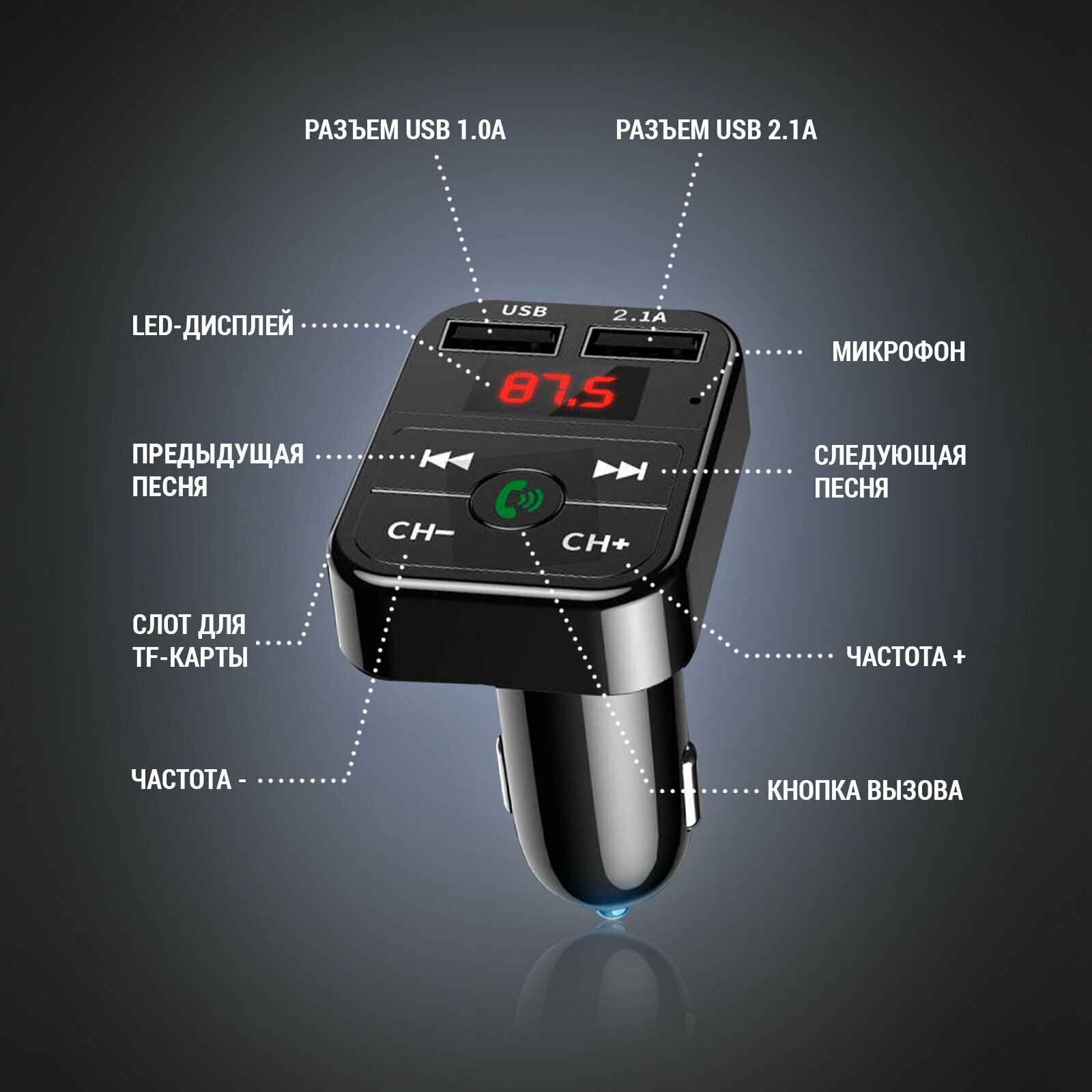Орбита / TS-CAF120 FM-трансмиттер с bluetooth/микрофоном/ для автомобиля/ зарядник QC 3.0 для авто в прикуриватель