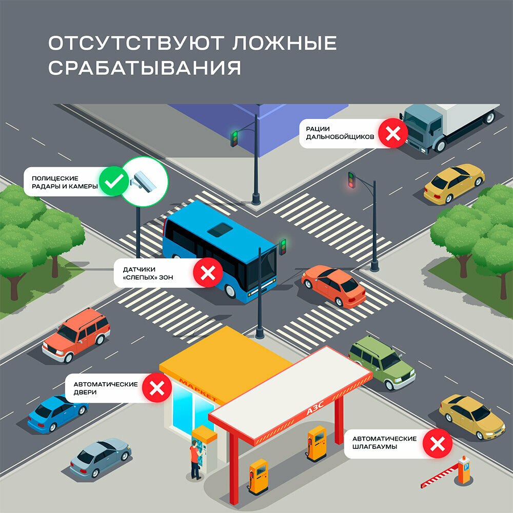 | Обнаружение радаров | "Multiradar" / "Robot" / "АВТОПАТРУЛЬ" / "Амата" / "Бинар" / "Визир" / "Вокорд" / "Искра" / "Кордон" / "Кречет" / "Крис" / "ЛИСД" / "Оскон" / "Полискан" / "Радис" / "Скат" / "Стрелка" |
