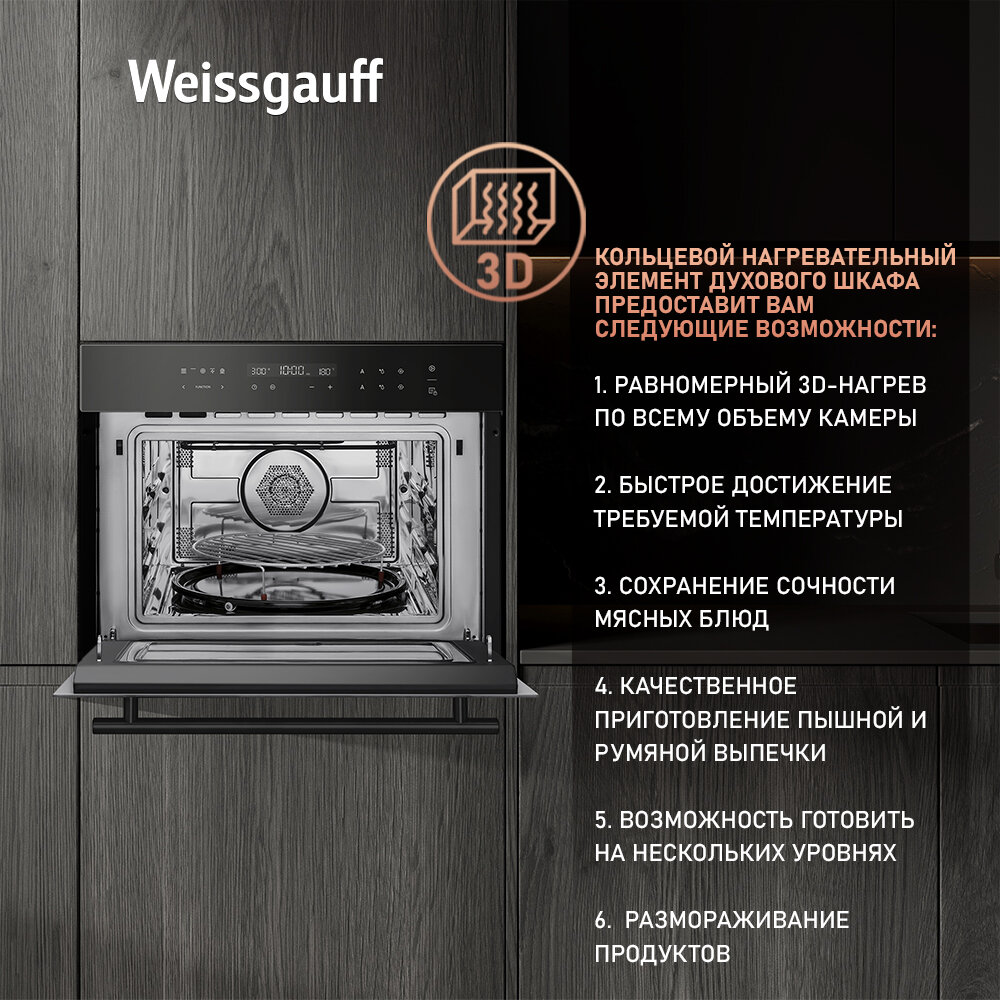 Электрический духовой шкаф Weissgauff OE 446 Black Edition с функцией СВЧ, 59.5 см, 3 года гарантии интересное: