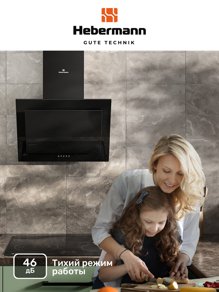 СохранитьНаклонная кухонная вытяжка Hebermann HBKH 60.5 B, 60 см, черная, кнопочное управление, LED лампы, отделка- окрашенная сталь,стекло. интересное: