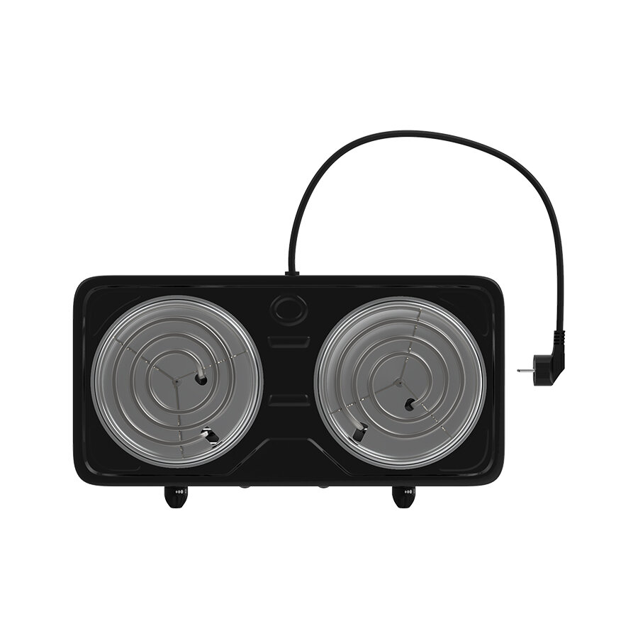 Плитка электрическая MAXVI HE201, 2000 Вт, черный, 2 стальные конфорки