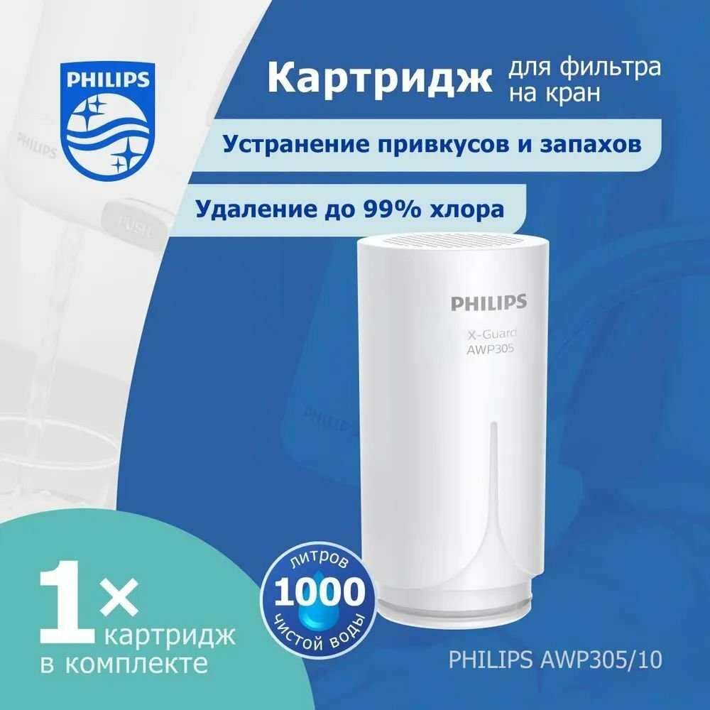 Купить PHILIPS Фильтр-картридж для насадки на кран, 1шт/уп AWP305/10 белый