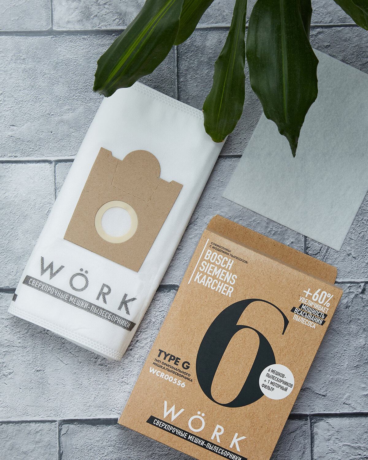 Мешки для пылесосов Bosch, Бош, Karcher, Керхер, Siemens, Тип: G, 6 шт. и 1 микрофильтр. Бренд Work