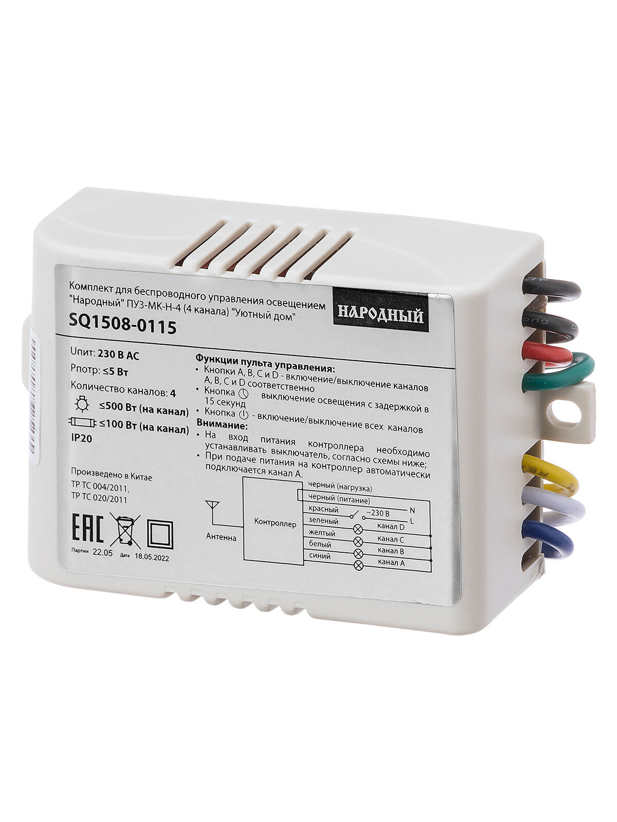 Комплект для беспроводного управления освещением ПУ3-МK-Н-4 (4 канала) "Уютный дом", Народный SQ1508-0115 (1 шт.) интересное: