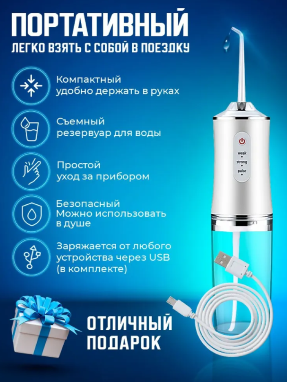 Беспроводной портативный ирригатор для полости рта с 4 насадками и USB-зарядкой интересное: