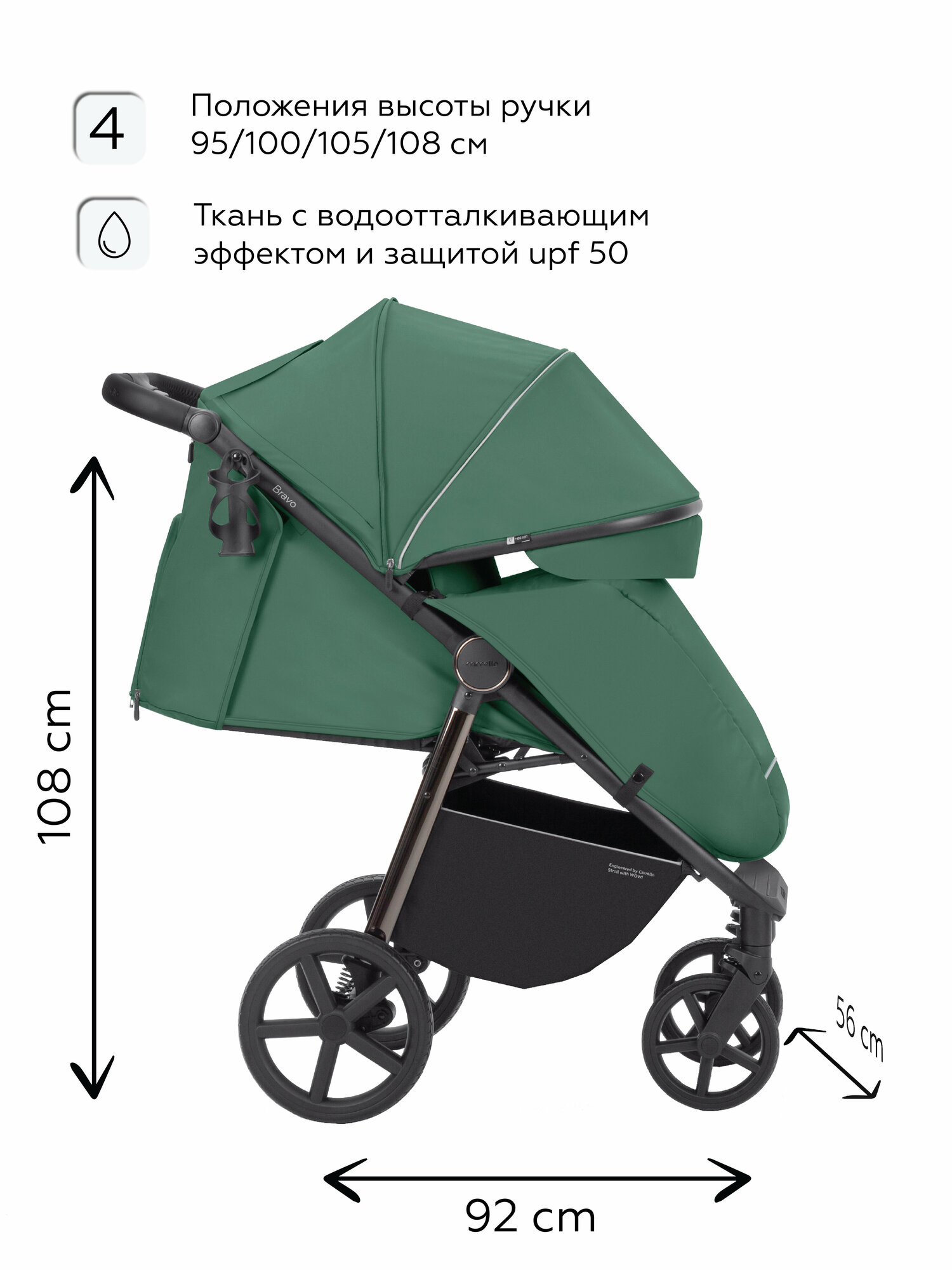 Коляска прогулочная CARRELLO Bravo Plus CRL-5515, всесезонная, зеленая