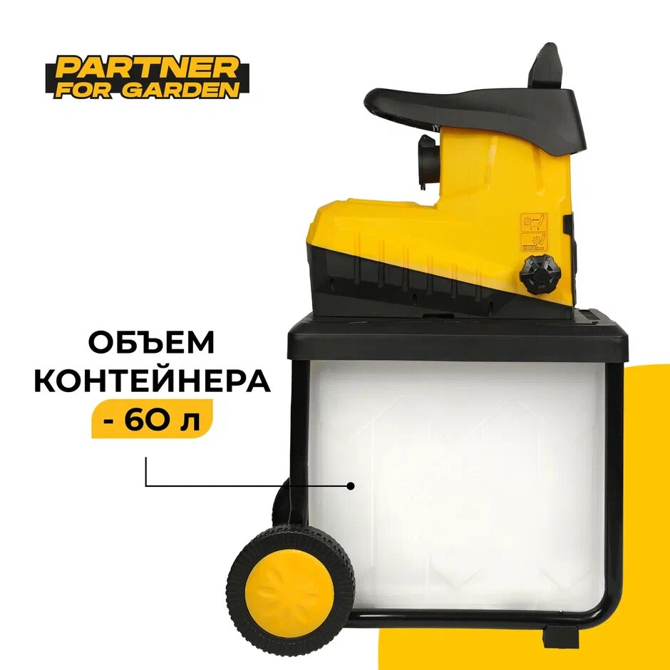 Измельчитель садовый электрический Partner for Garden EGS 3000GP ( 3 кВт, 4500 об/мин, контейнер 60 л)