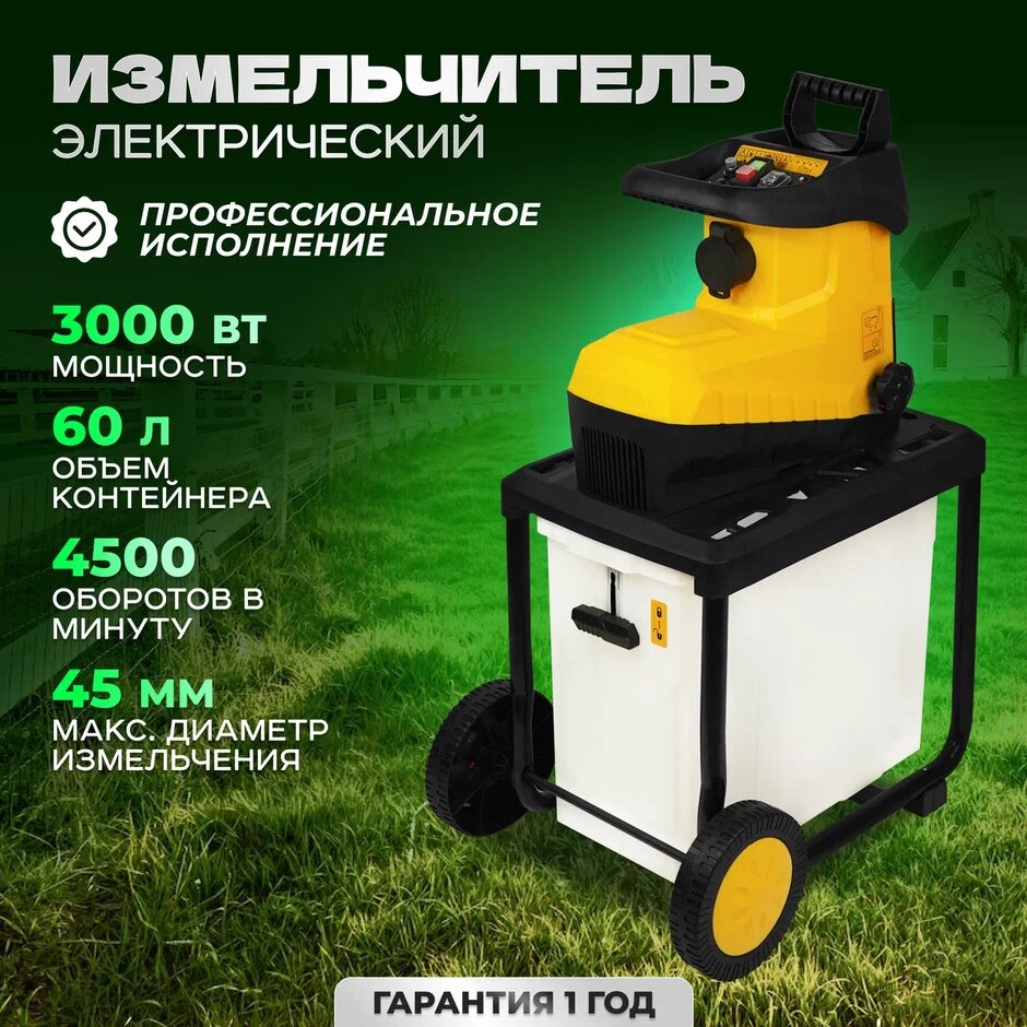 СохранитьИзмельчитель садовый / Измельчитель веток / Измельчитель садовый электрический / Дробилка для веток Partner for Garden EGS 3000GP ( 3 кВт, 4500 об/мин, контейнер 60 л, измельчение до 45 мм ) интересное: