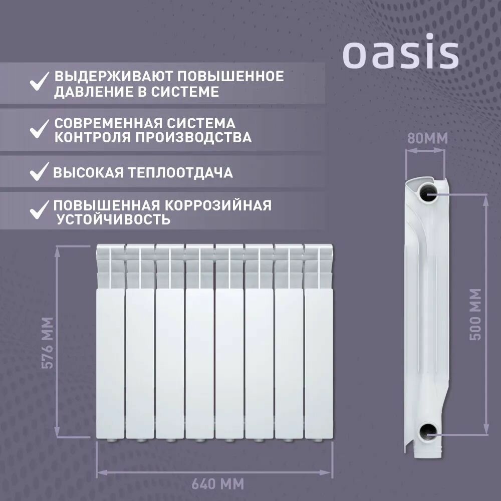 Радиатор секционный Oasis Al 500/80, кол-во секций: 8, 15.2 м2, 1520 Вт, 640 мм.
