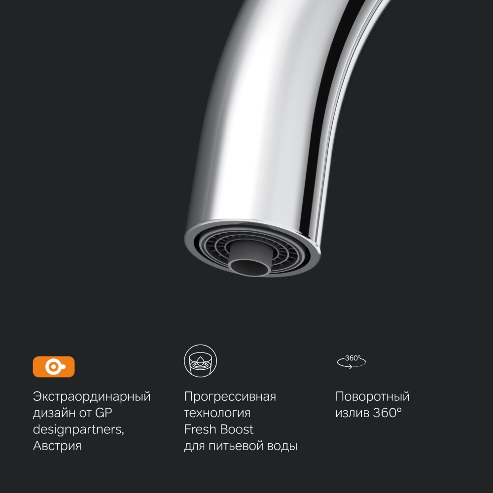 | Особенности | аэратор / Гибкая подводка / Поворотный / С фильтром для питьевой воды / Совмещенный излив для питьевой воды |