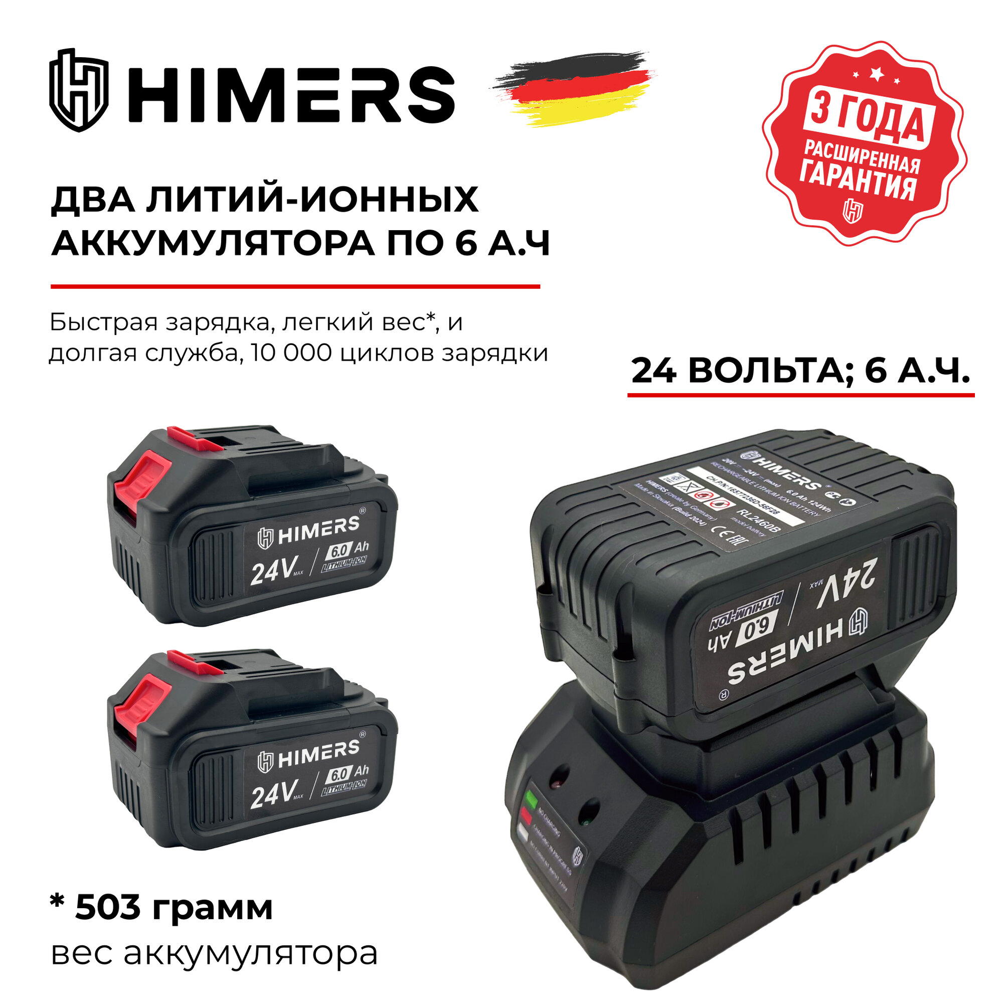 Ударный шуруповерт HIMERS DF63B аккумуляторный 24V, 2 АКБ по 3 А.ч., 63 Н.м., Кейс / для сверления, закручивания 24в