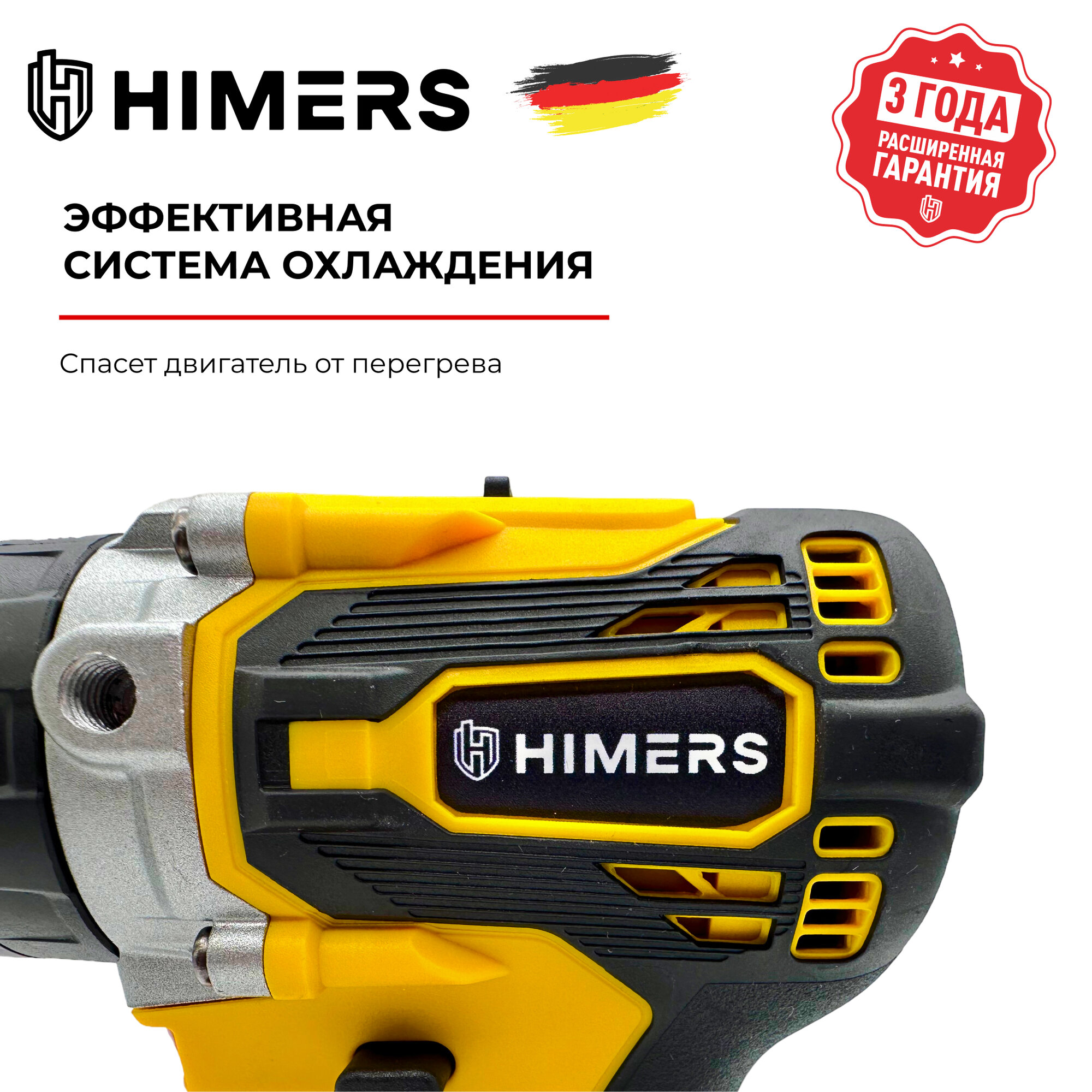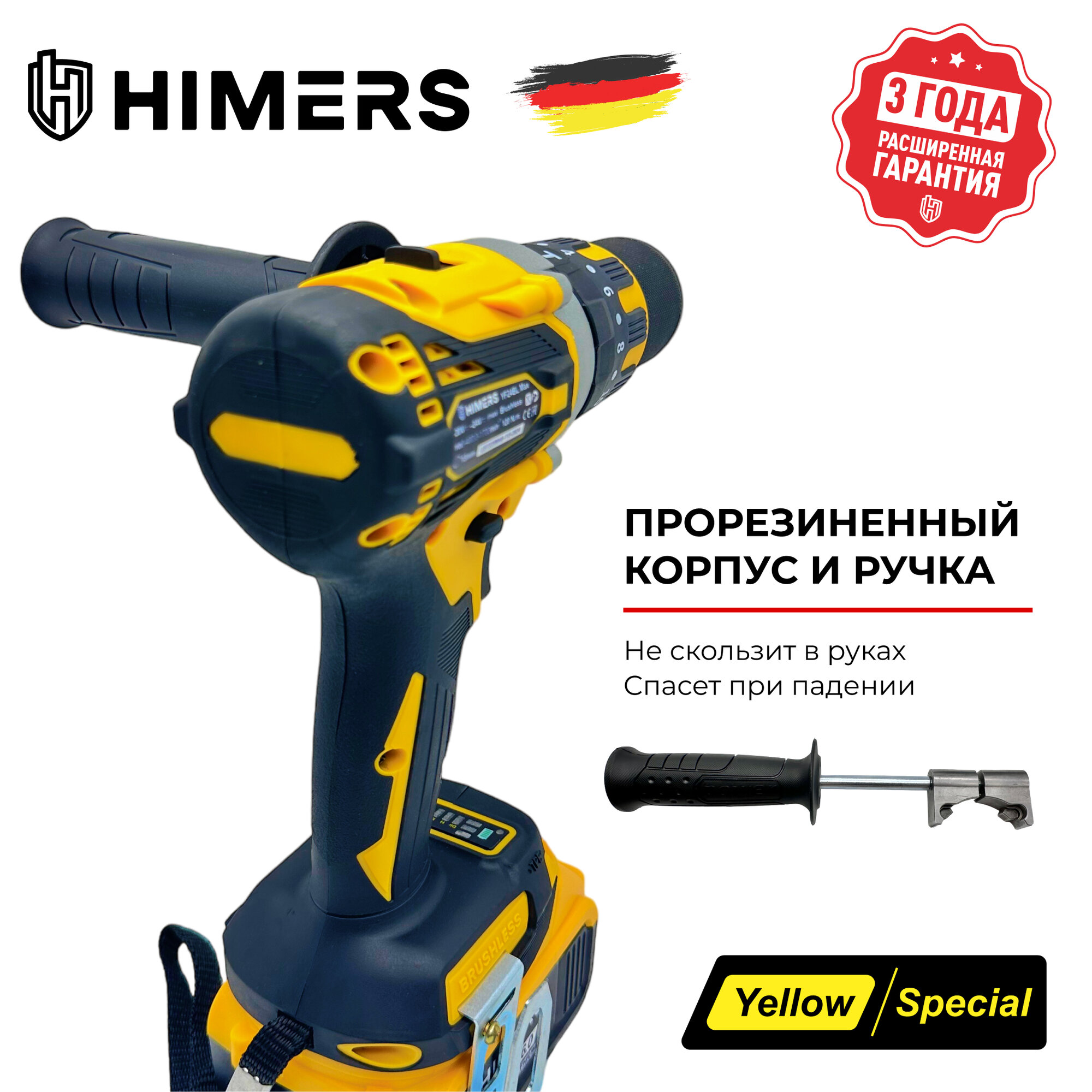 Бесщеточный шуруповерт HIMERS DF65Y-BL аккумуляторный 18V, 2 АКБ по 3 А. ч, 65 Н. м, 10мм патрон, Версия Yellow special / Кейс / многофункциональный для сверления, закручивания 18в