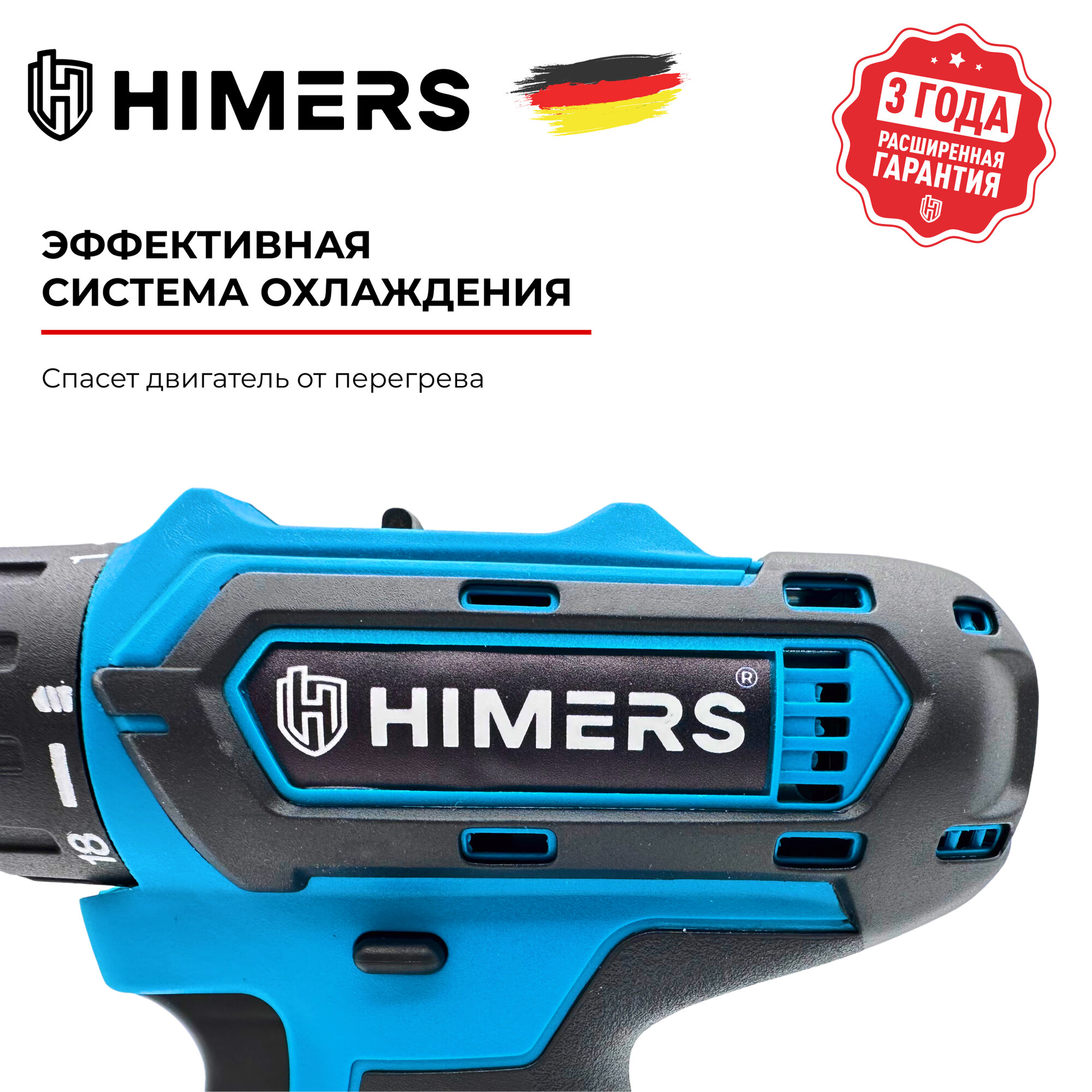 Дрель-шуруповерт HIMERS DF48B аккумуляторный 21V, 2 АКБ по 2 А. ч, 43 Н. м, патрон 10мм / кейс