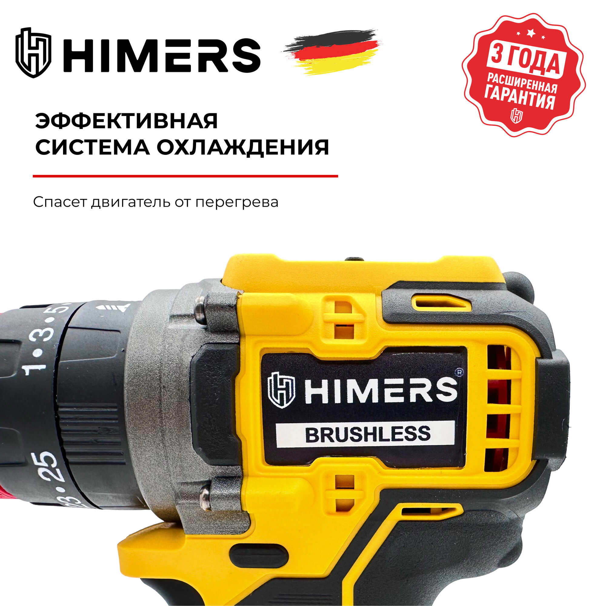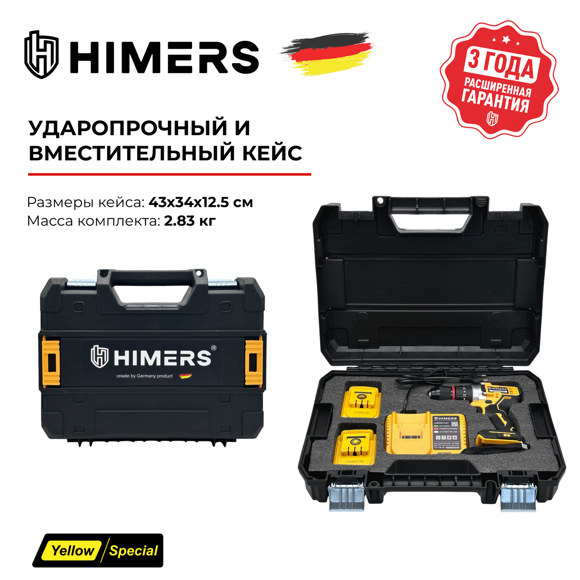 Бесщеточный шуруповерт HIMERS DF65Y-BL аккумуляторный 18V, 2 АКБ по 3 А.ч., 65 Н.м., 10мм патрон, Версия Yellow special / Кейс / многофункциональный для сверления, закручивания 18в