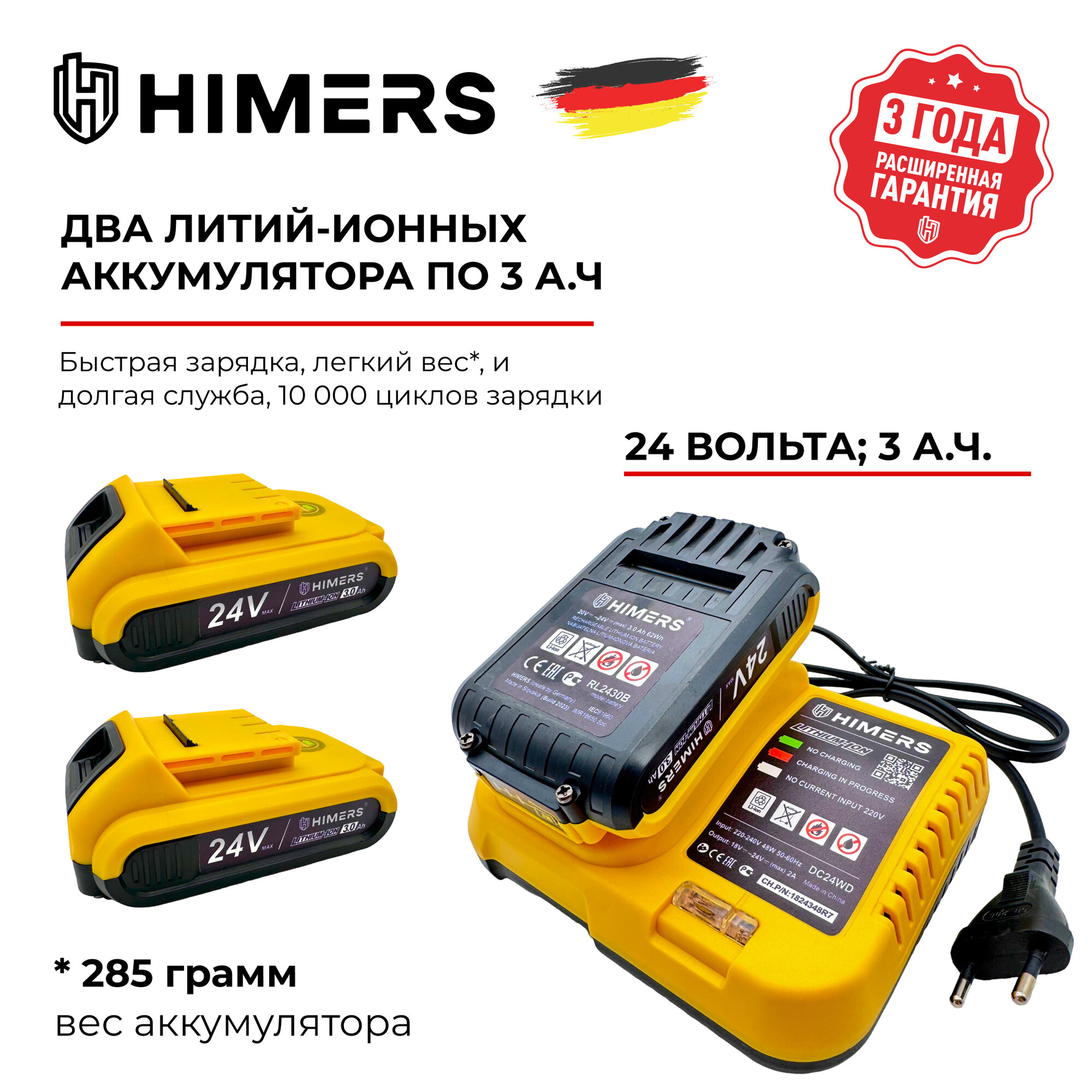 Ударный шуруповерт HIMERS DF63B аккумуляторный 24V, 2 АКБ по 3 А.ч., 63 Н.м., Кейс / для сверления, закручивания 24в