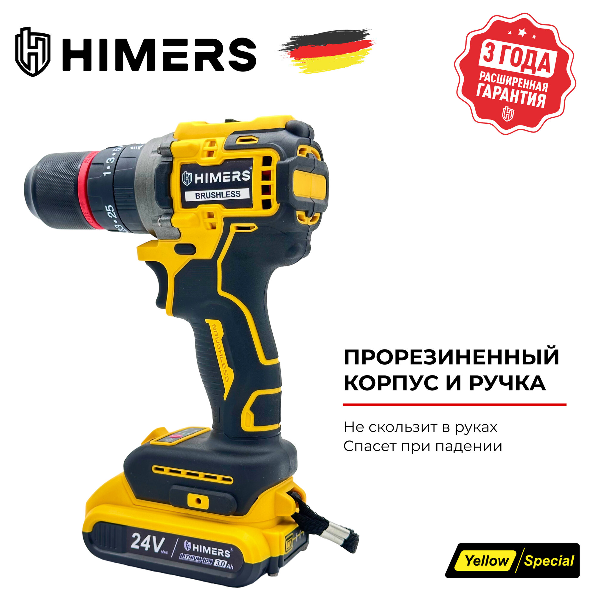 Бесщеточный ударный шуруповерт HIMERS DF85Y-BL аккумуляторный 24V, 2 АКБ по 3 А.ч., 85 Н.м., Версия Yellow special / Кейс / многофункциональный для сверления, закручивания 24в