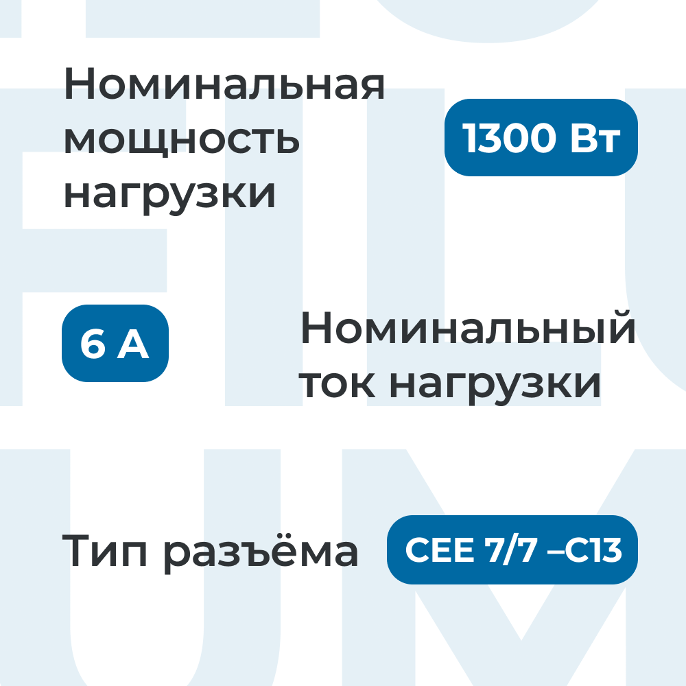 | Разъемы | CEE 7/7 (Schuko) - IEC C13 |