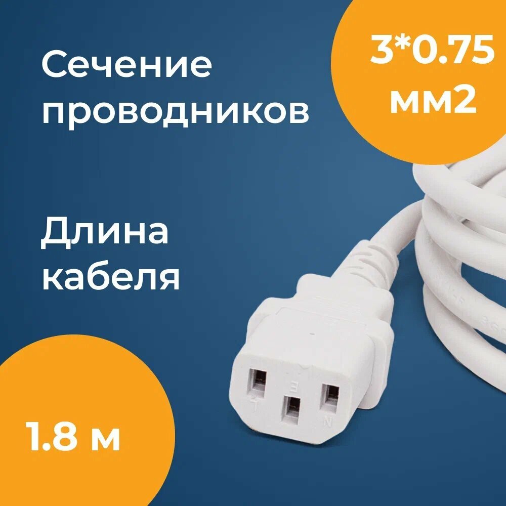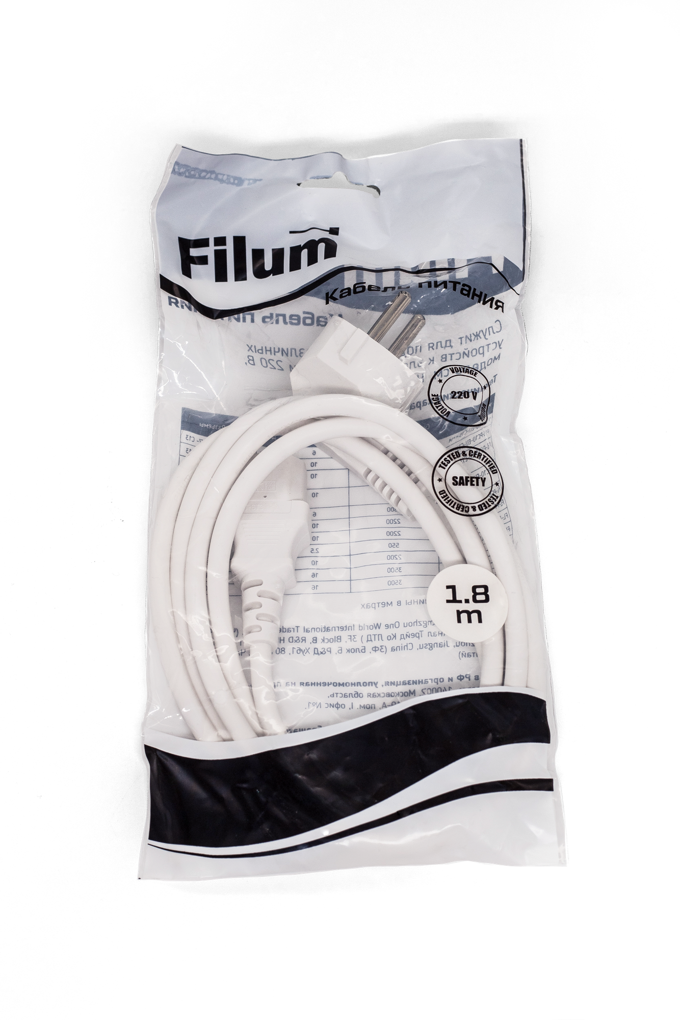 Купить Кабель питания Filum CEE 7/7- С13, 3х0.75мм, 220В, 10A, белый, 1.8м
