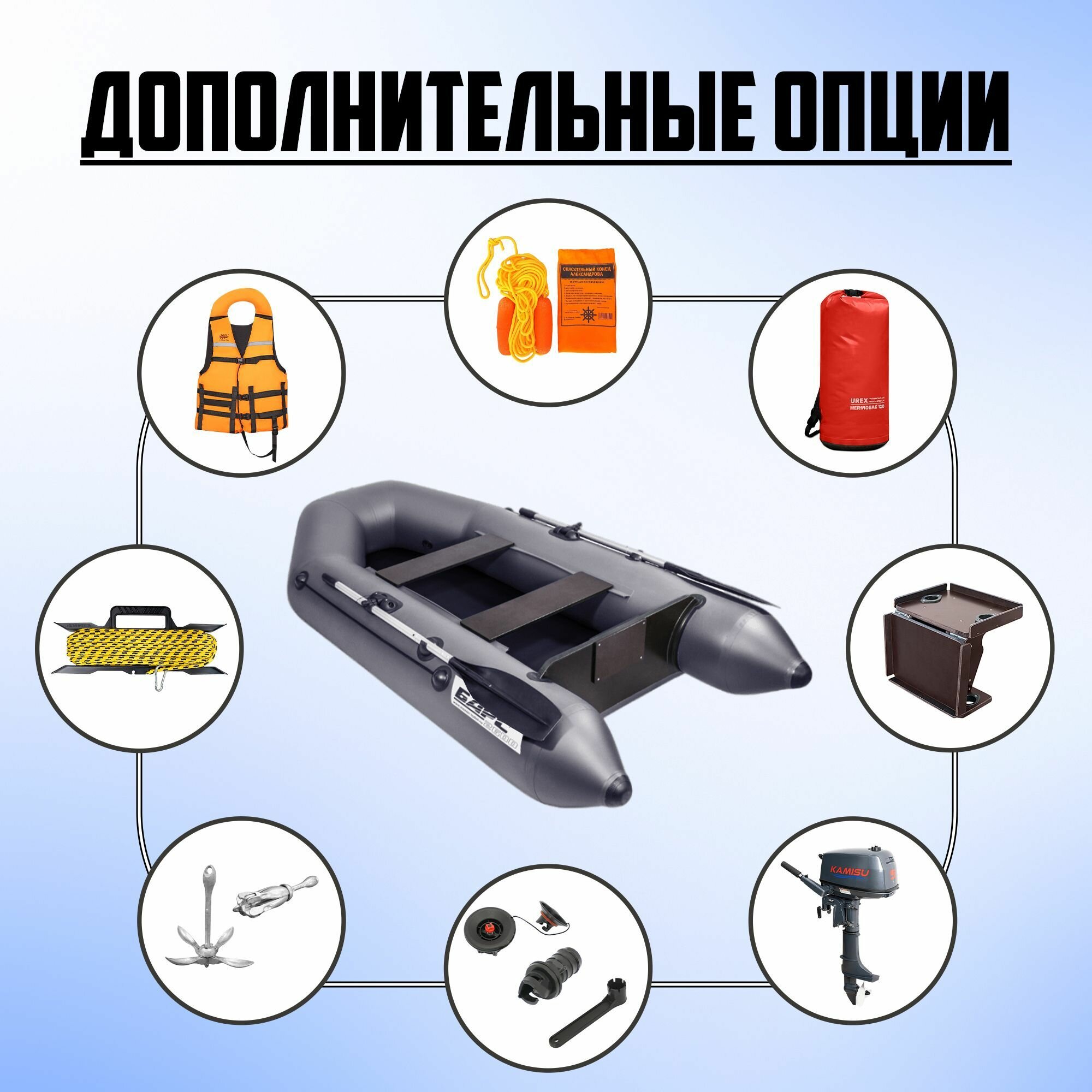 | Комплектация | весла, жесткое сиденье, леерный трос, насос, ремкомплект, уключины |