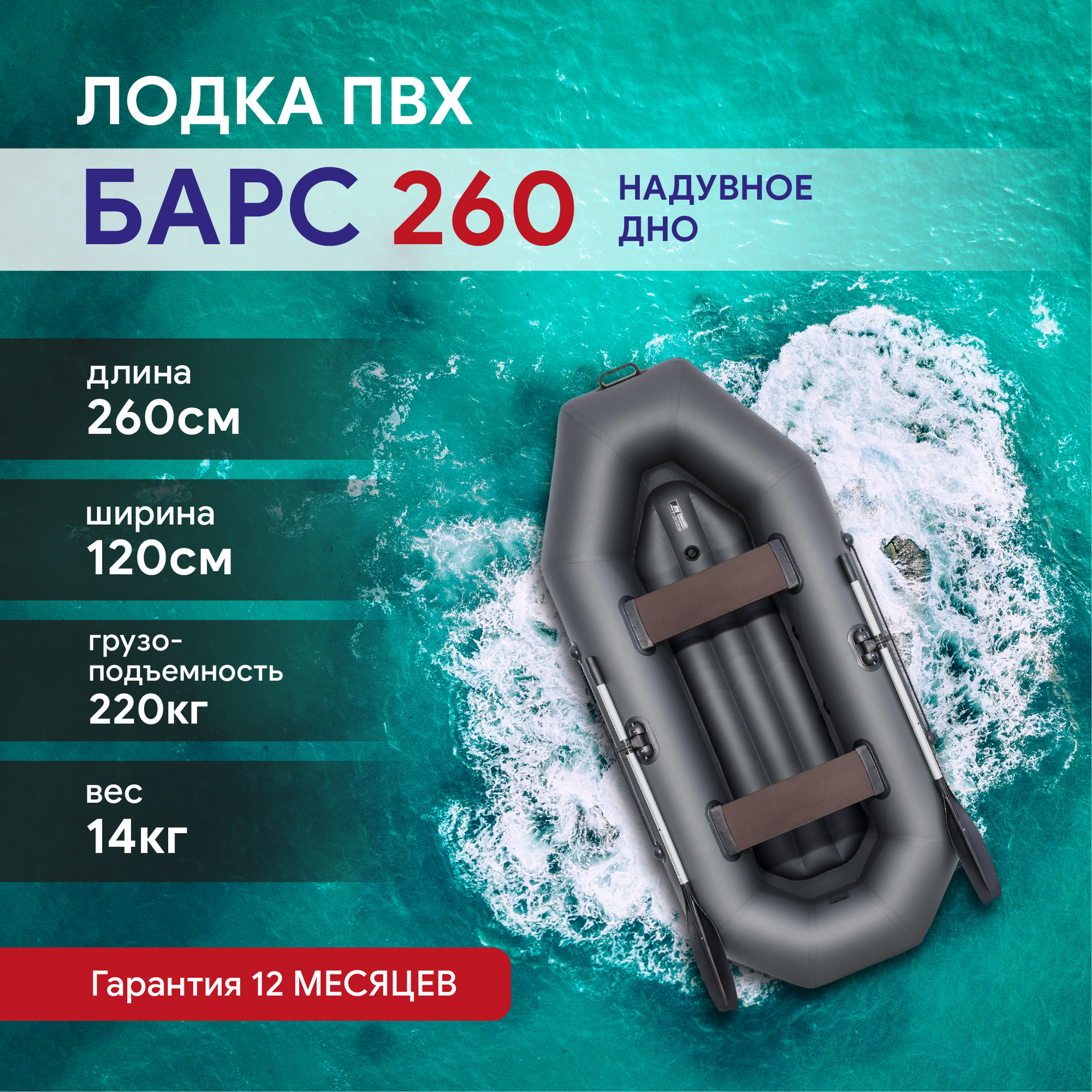 Лодка надувная для рыбалки Барс 260 НД, двухместная, надувное дно, сварные швы, серый интересное: