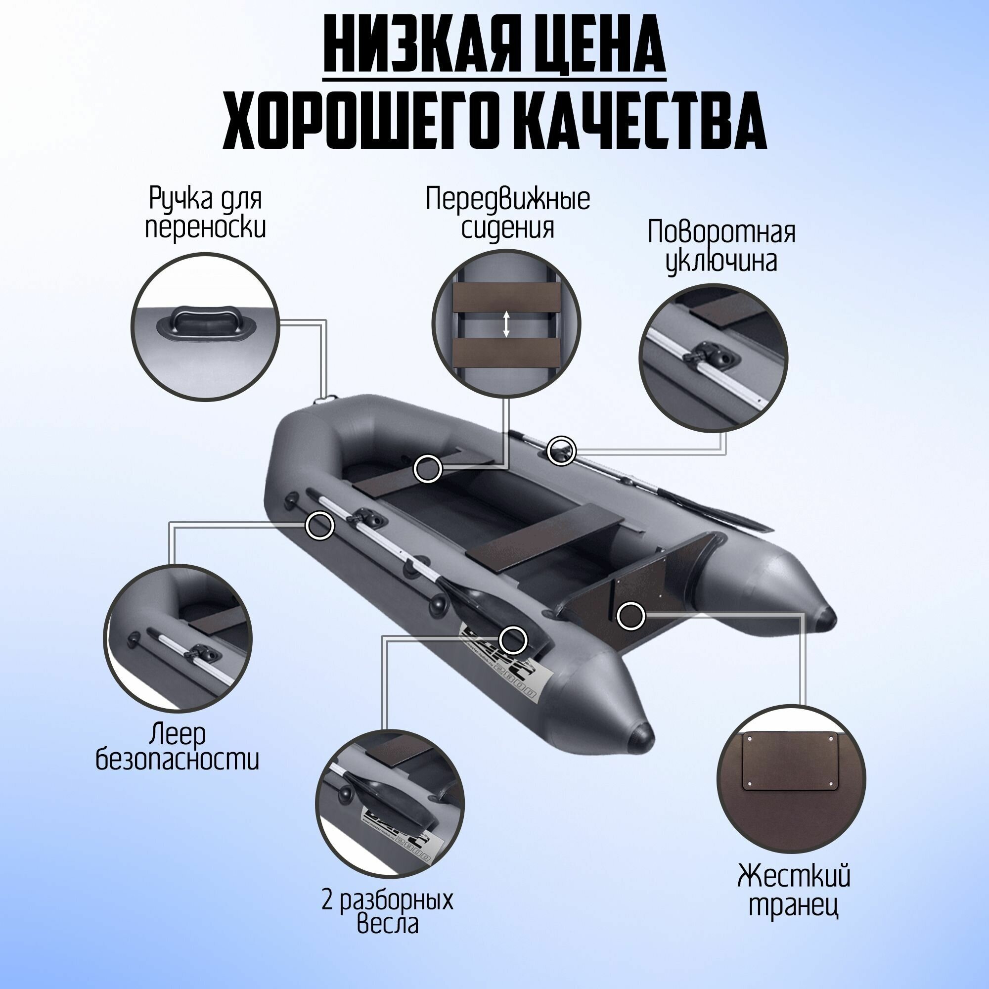Лодка пвх под мотор Барс 2800 двухместная, сварные швы, графит интересное: