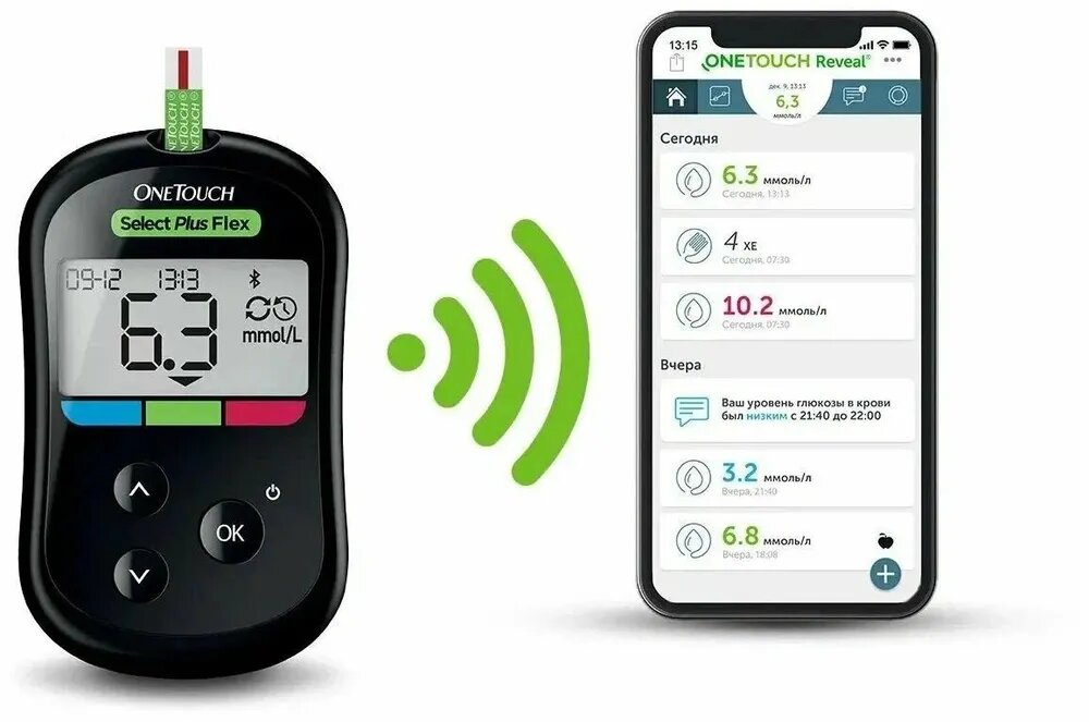 Глюкометр можно через блютуз соединить с приложением на телефоне