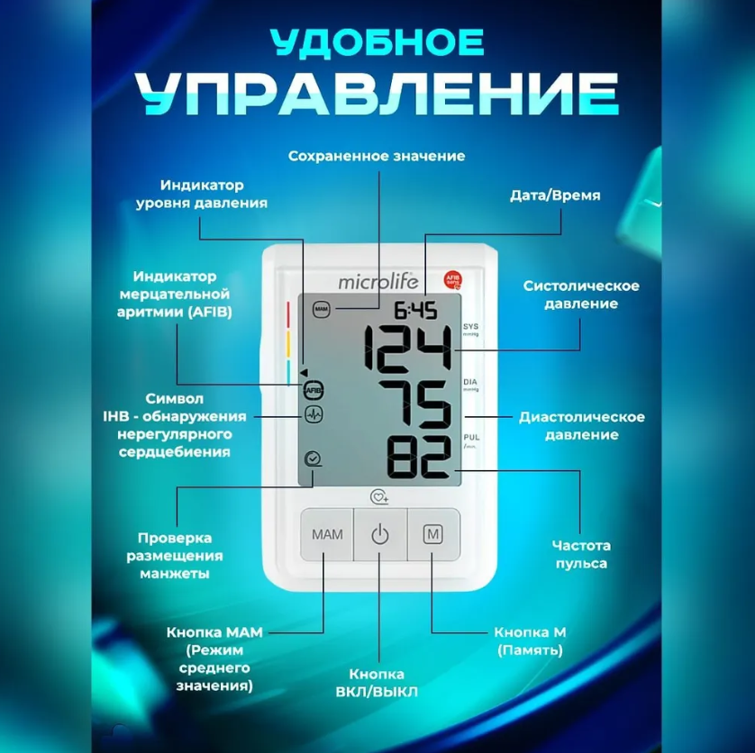 | Особенности | автоматическое отключение / безболезненная манжета / фиксация даты и времени |