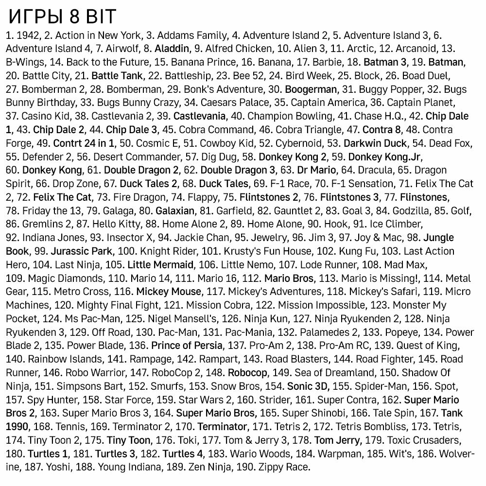 | Минусы: | Во многих 8 бит играх перепутаны кнопки А и В. Нет игры мортал комбат 3 ультиматум |