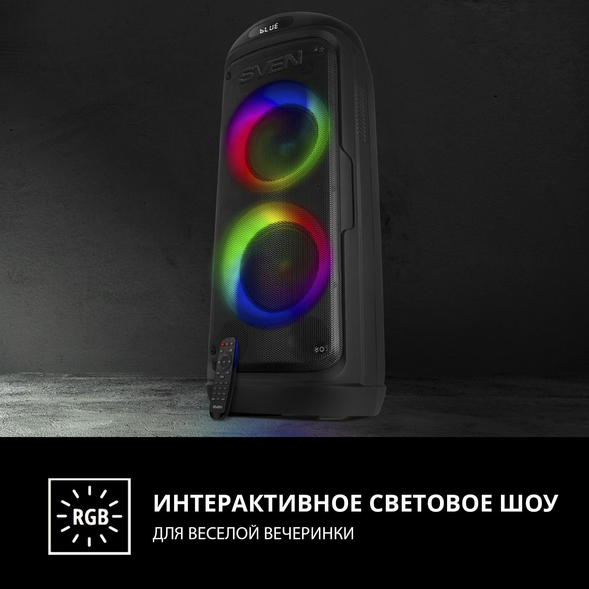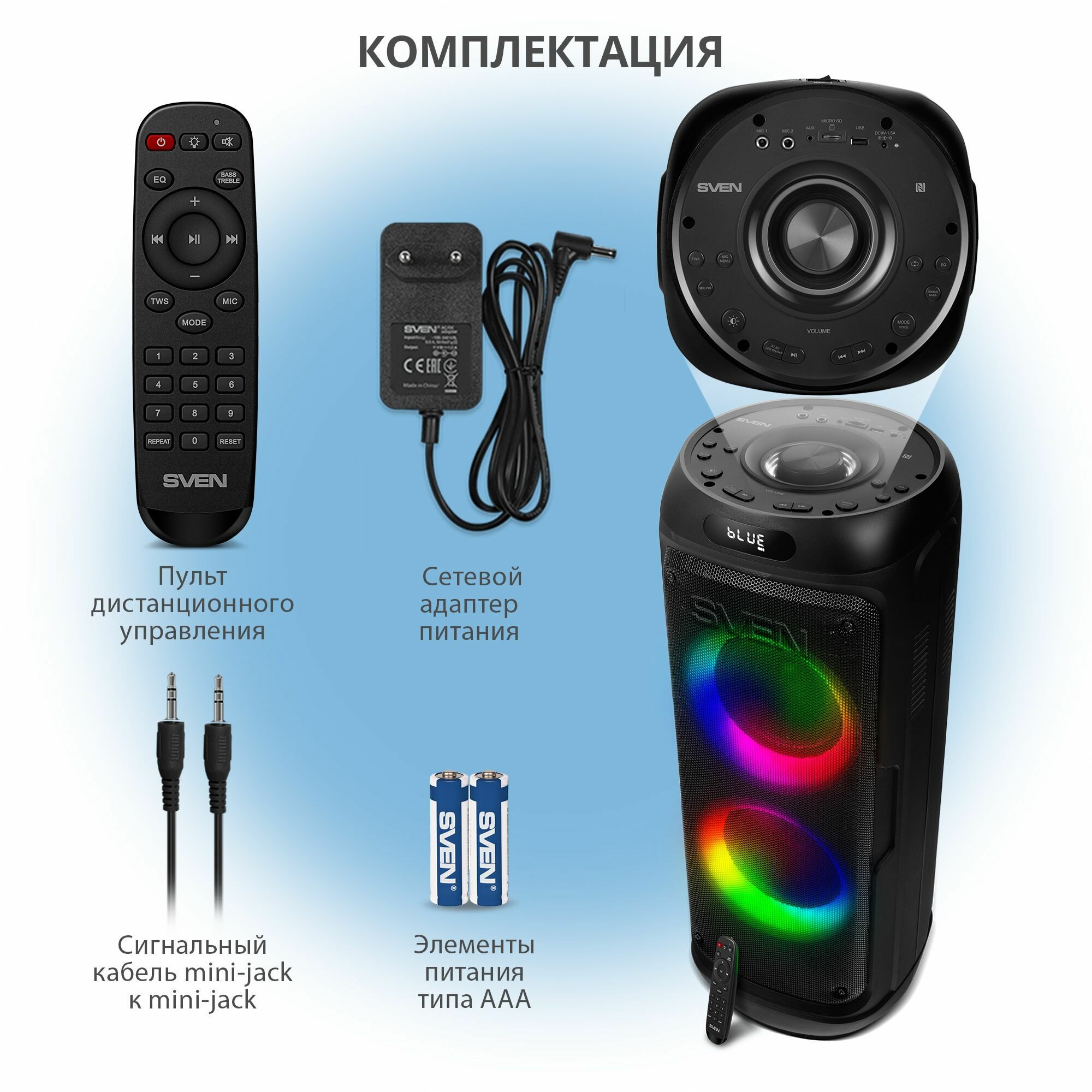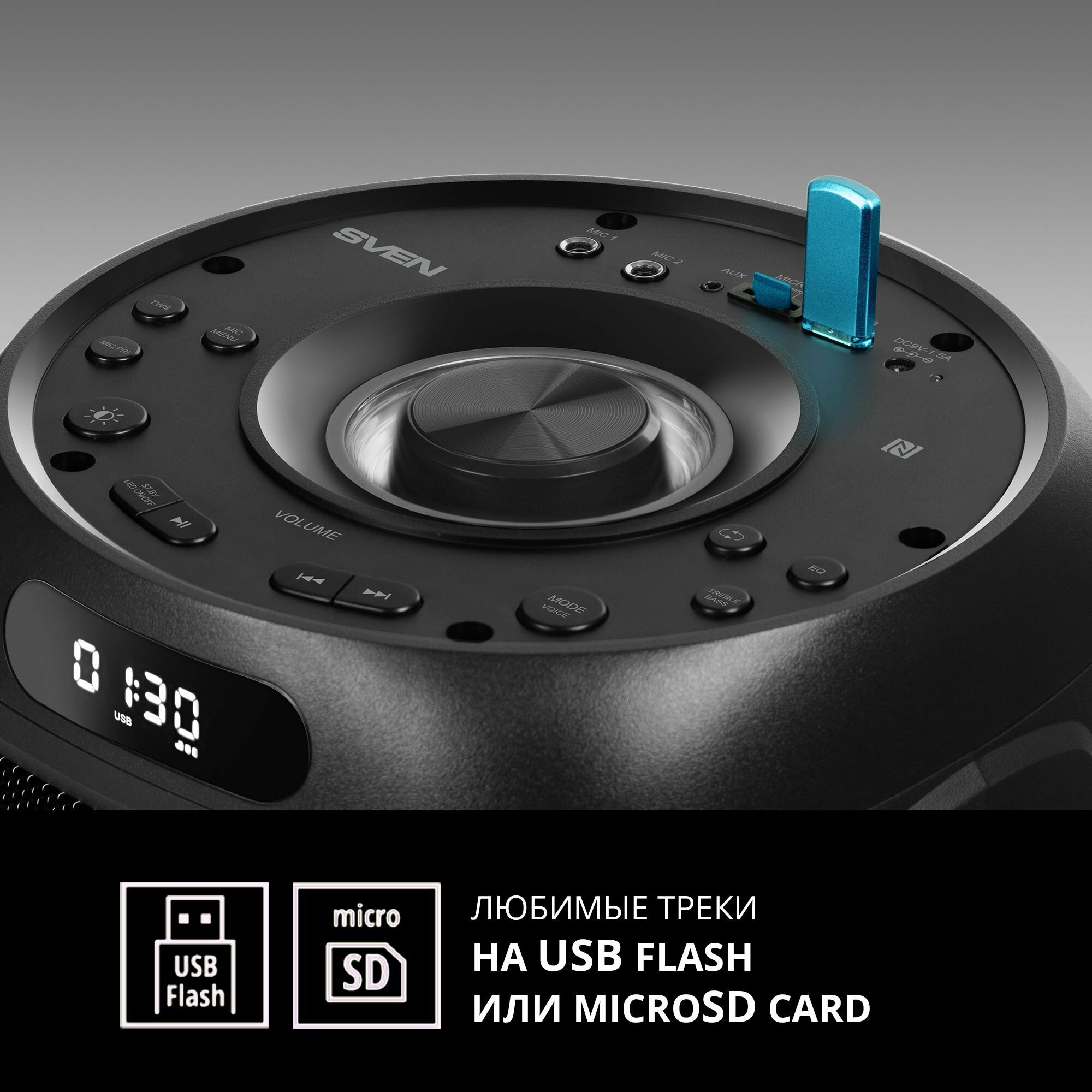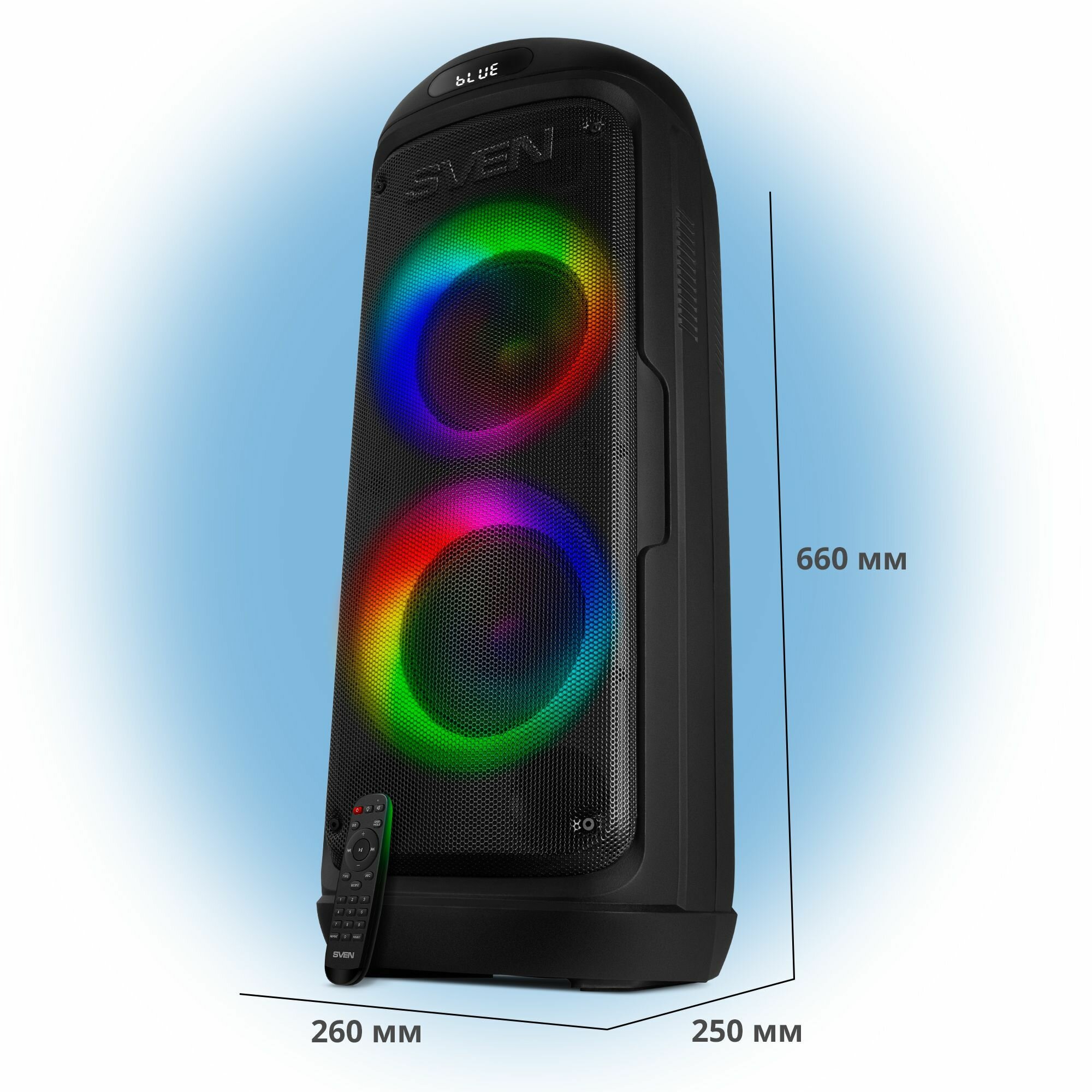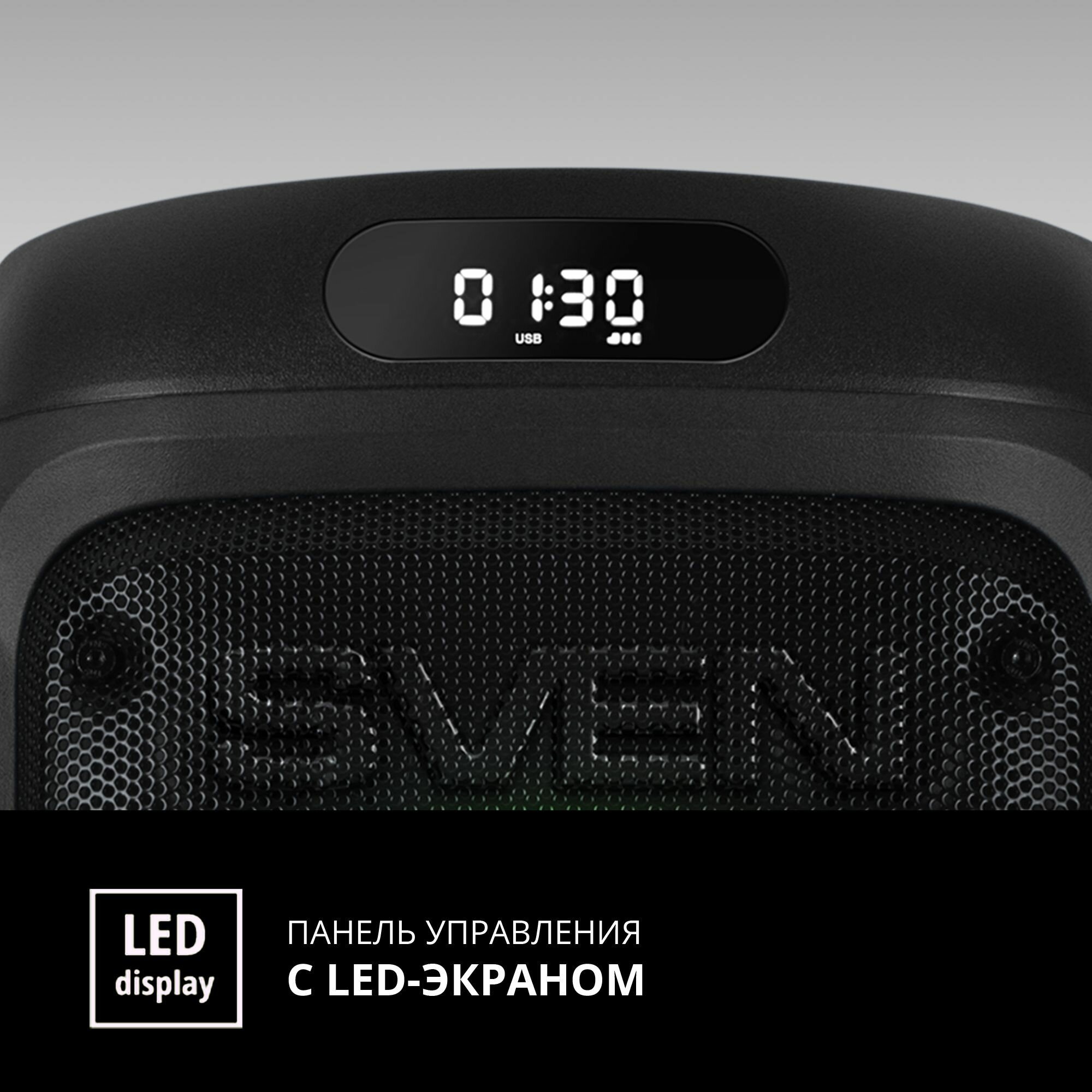 Портативная акустика SVEN PS-770, мощность 2x50 Вт (RMS), Bluetooth, FM-радио, USB, microSD, LED-дисплей