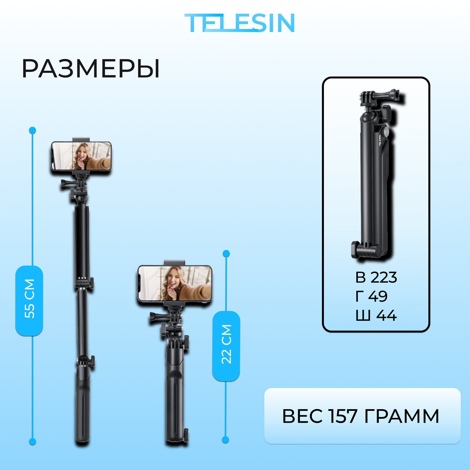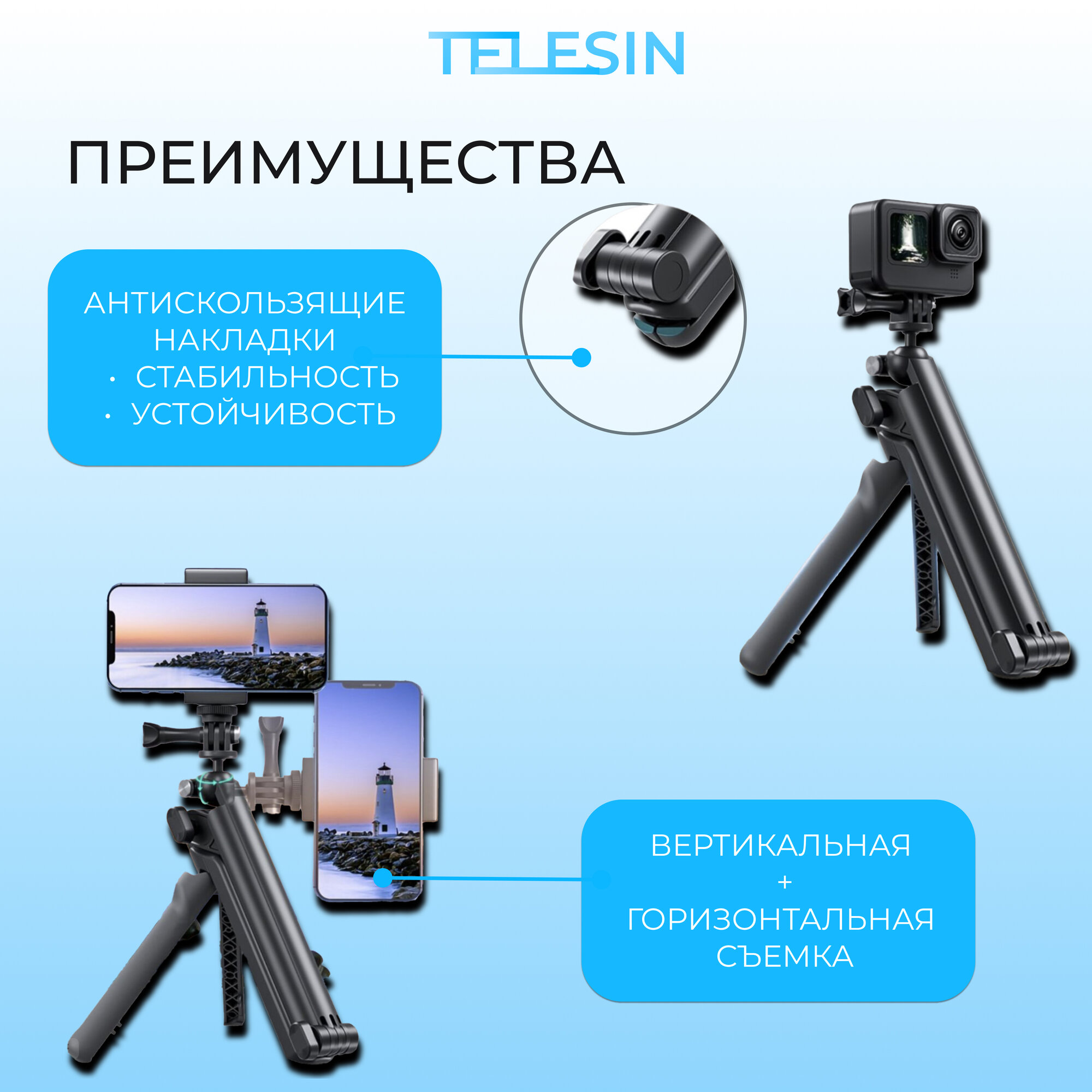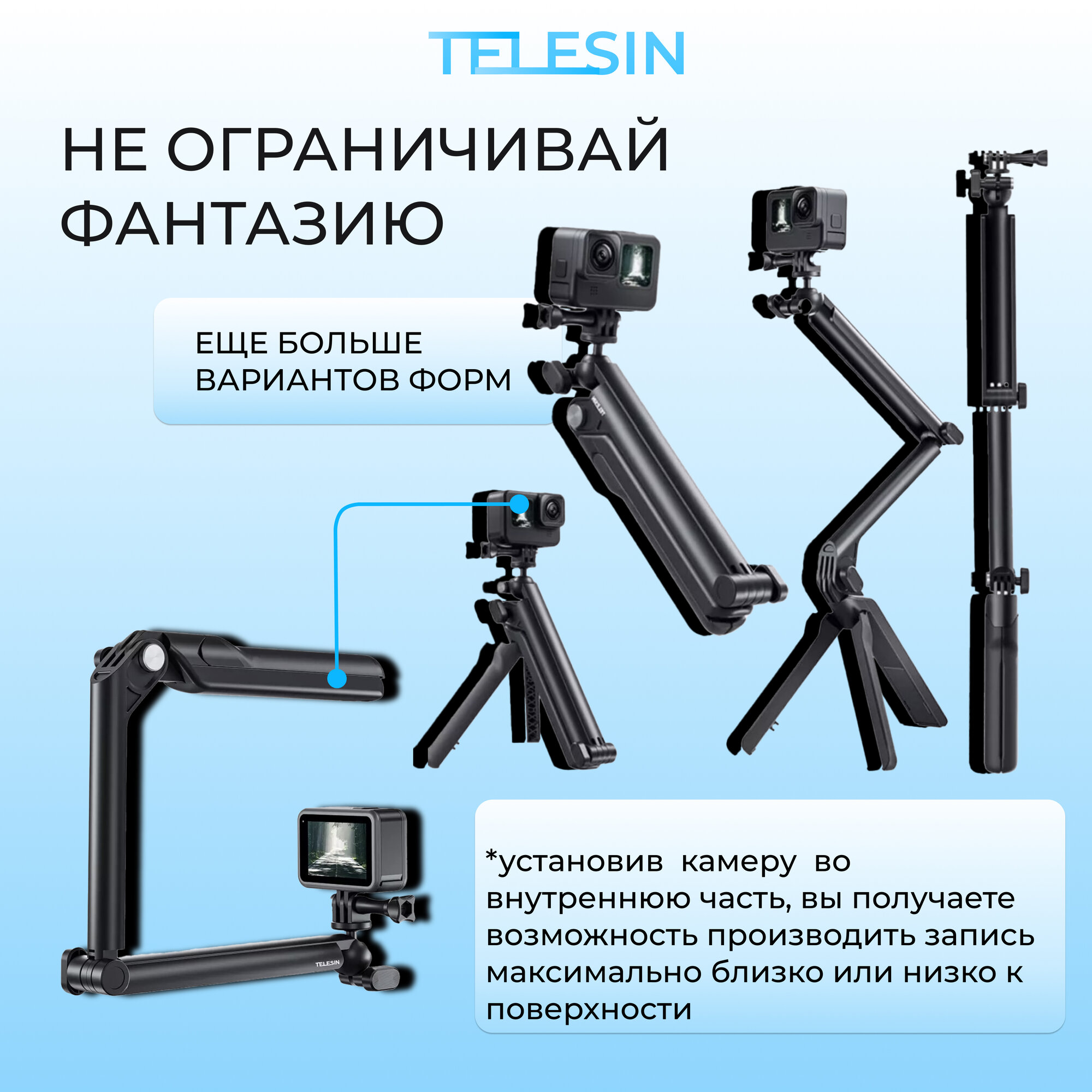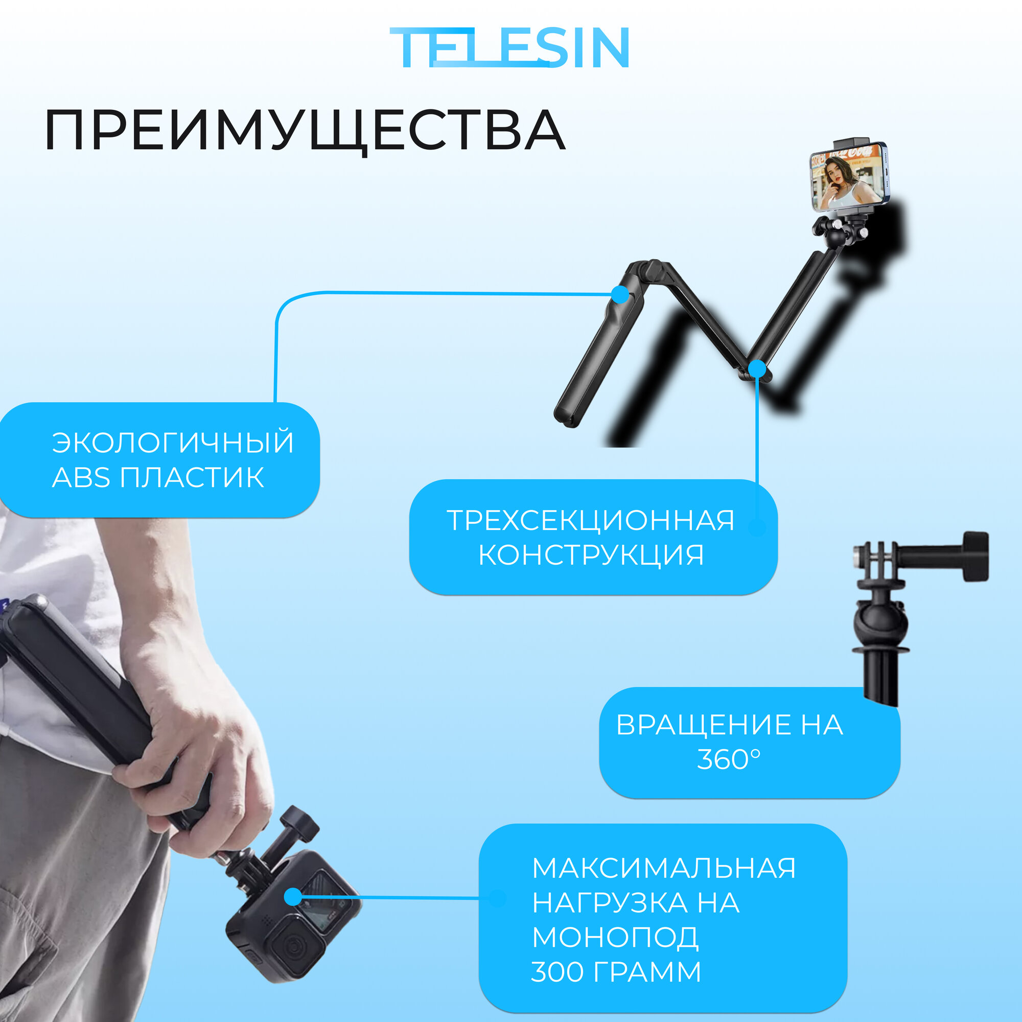 Универсальный штатив-монопод TELESIN для экшн-камер (TE-TPR-009) интересное: