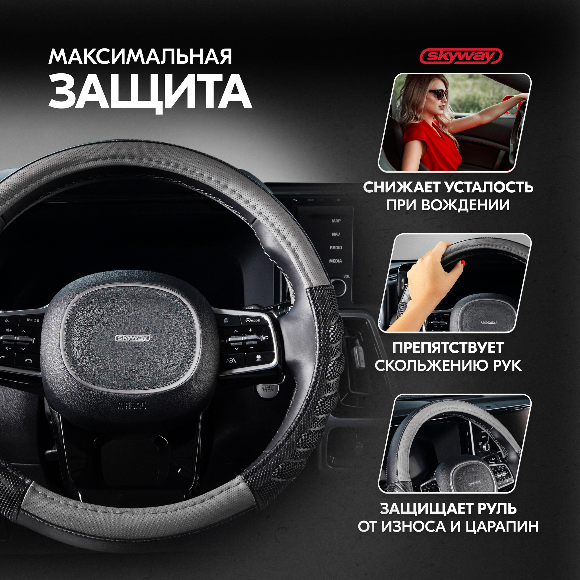Оплетка на руль Top-12 SKYWAY M (37-39) серый экокожа, S01102501